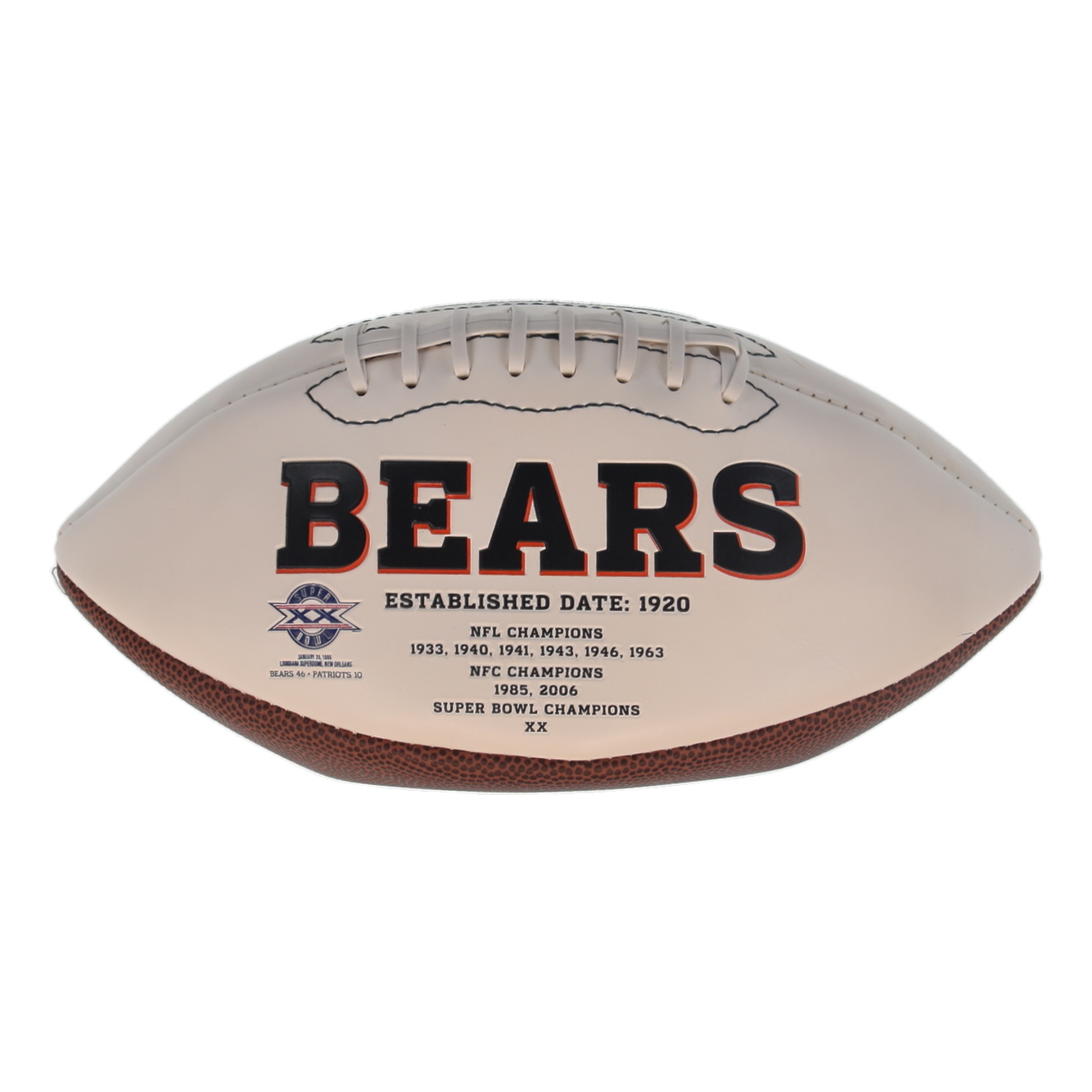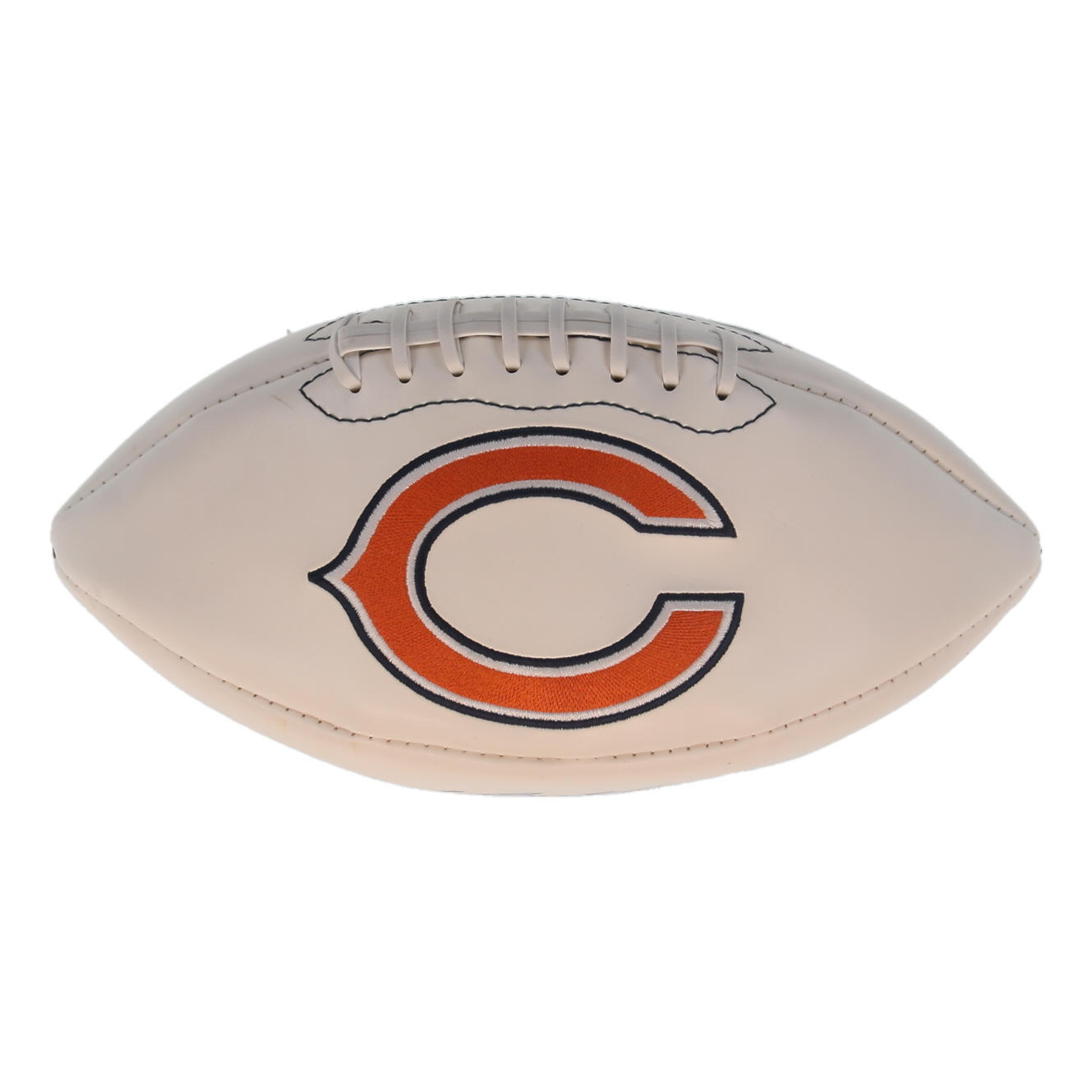 Chicago Bears Logo Football. Hand-signed and inscribed by Dick Butkus (D. 2023, HOF). Please note, the signature has bled, there are stains throughout the football, and it does not fully hold air.