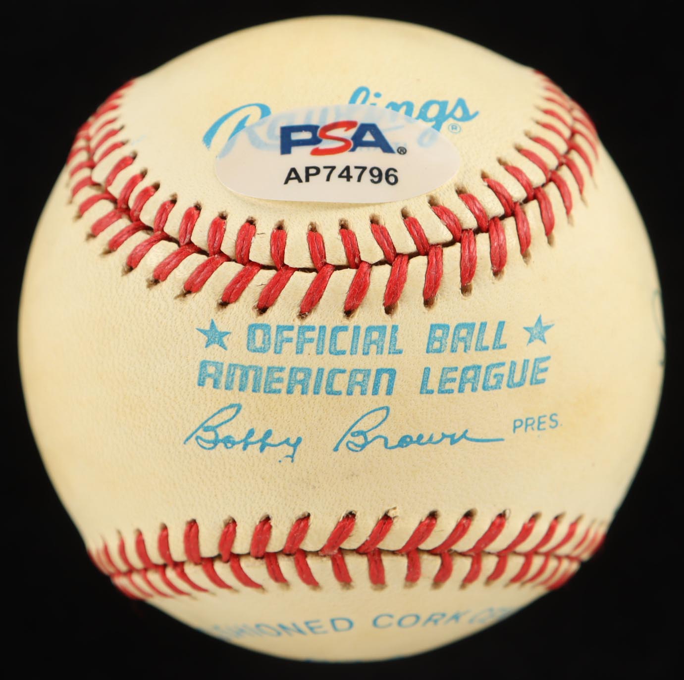 Rawlings Official American League baseball. Has been hand-signed by (3) Harvey Haddix (D. 1994, St. Louis Cardinals), Don Larsen (D. 2020, New York Yankees), & Johnny Vander Meer (D. 1997, Cincinnati Reds). Please note, ball has been stained and naturally tone. Refer to photos for more details.