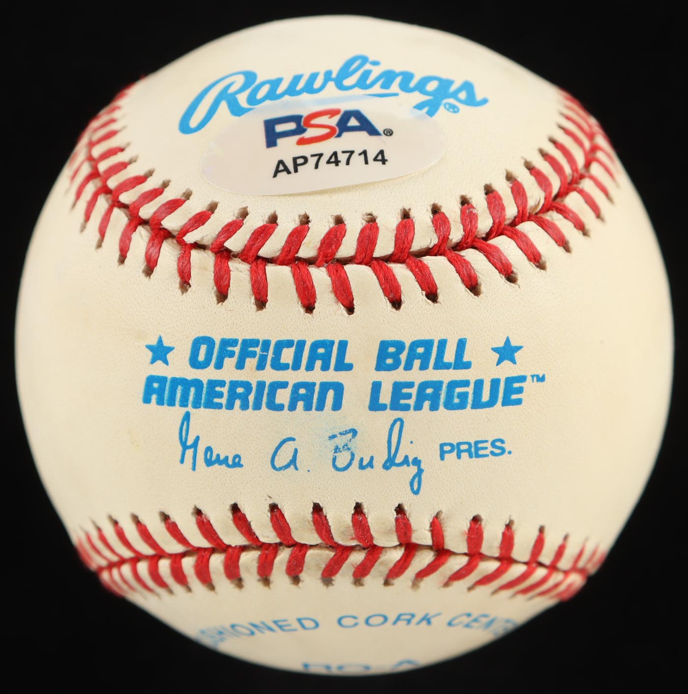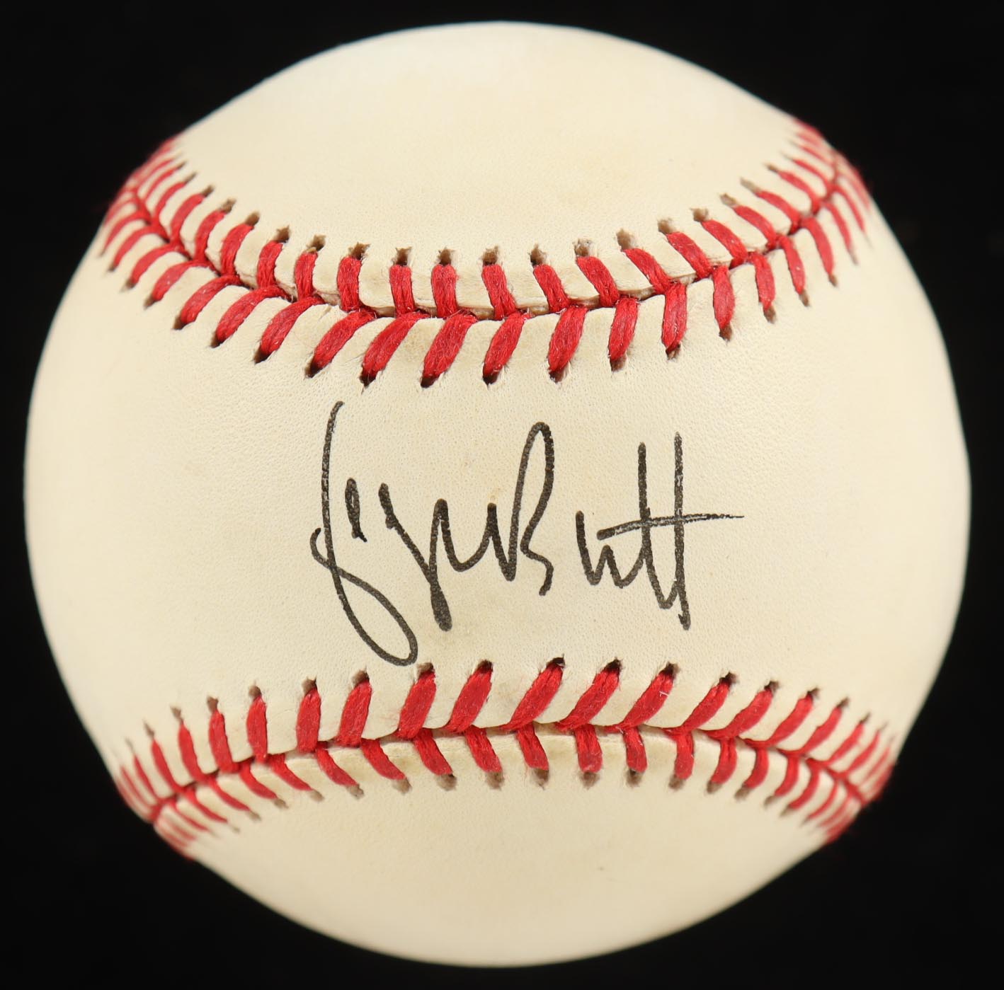 Rawlings Official American League baseball. Has been hand-signed by George Brett (Kansas City Royals, HOF). Please note, ball has been stained and naturally tone. Refer to photos for more details.