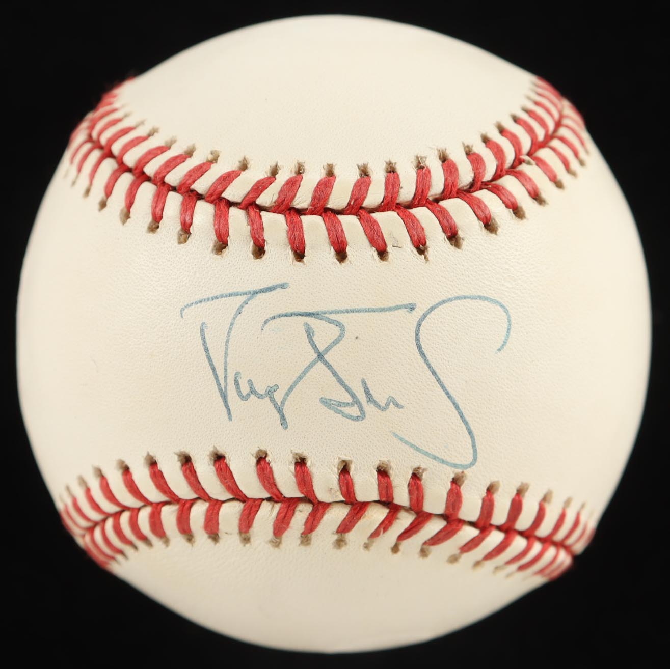 Rawlings Official National League baseball. Has been hand-signed by Darryl Strawberry (New York Yankees). Please note, ball has been stained and naturally tone. Refer to photos for more details.