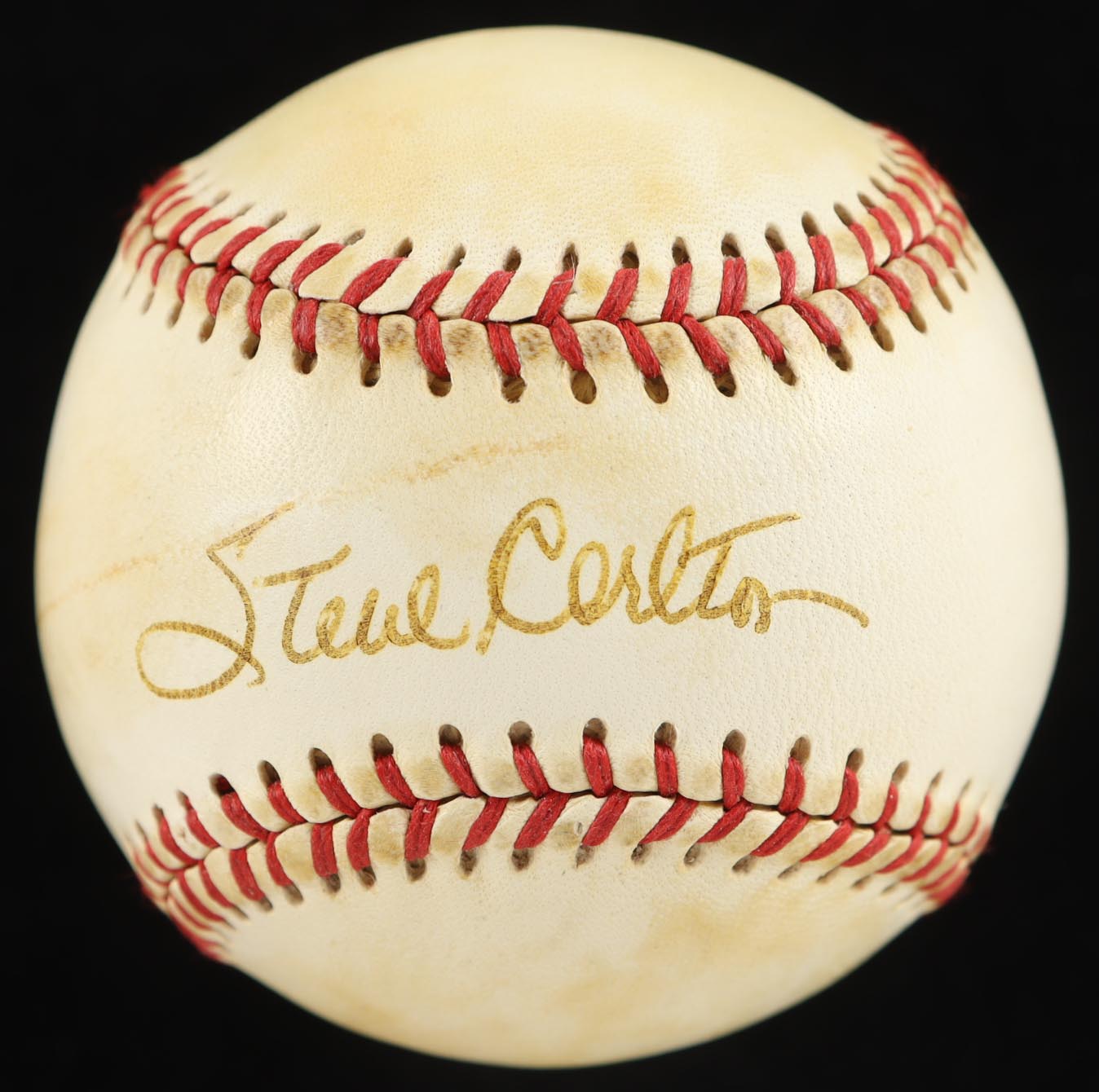 Spalding Official Major League baseball. Has been hand-signed by Steve Carlton (Philadelphia Phillies, HOF). Please note, ball has been stained and naturally tone. Refer to photos for more details.