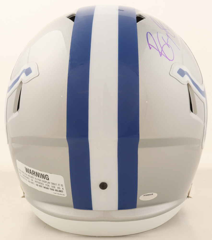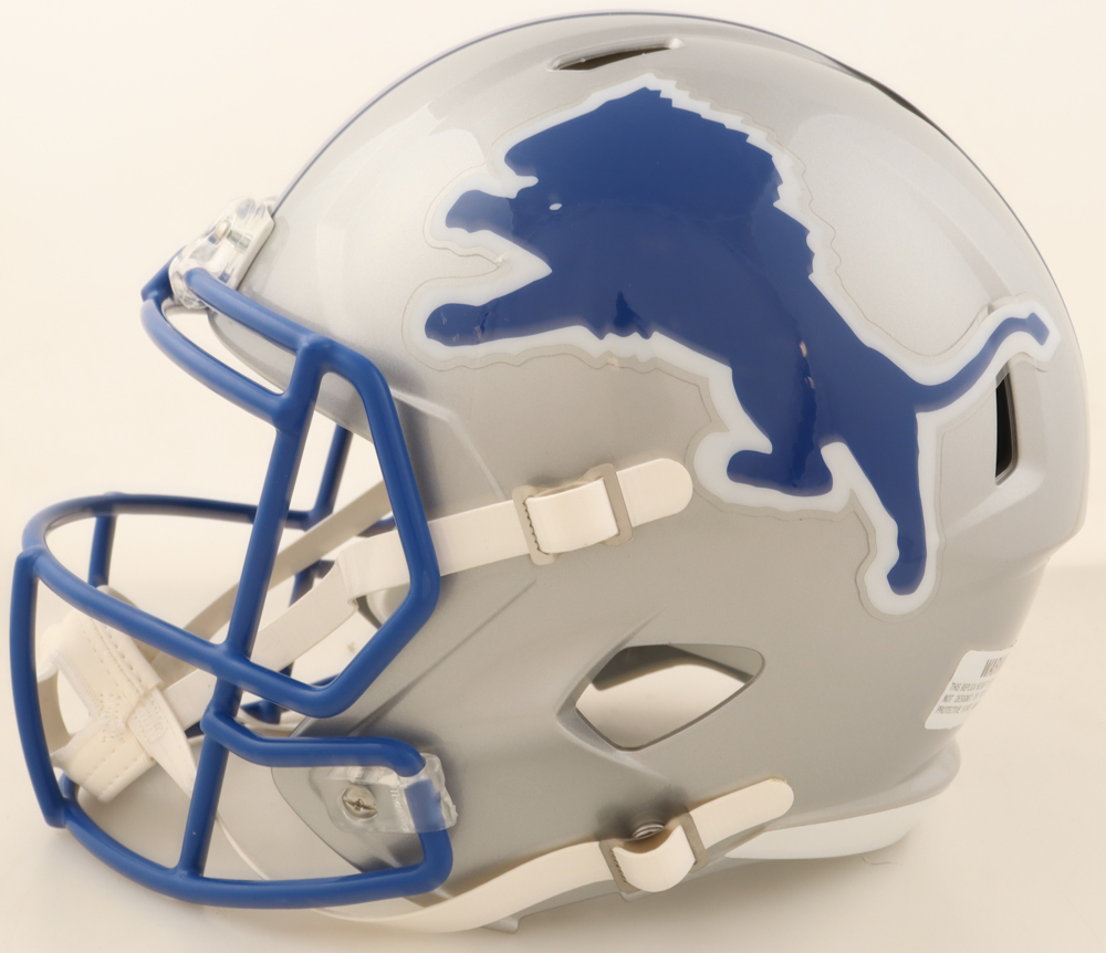 Riddell Detroit Lions Full-Size Replica Throwback Speed Helmet has been hand-signed by Barry Sanders (HOF).