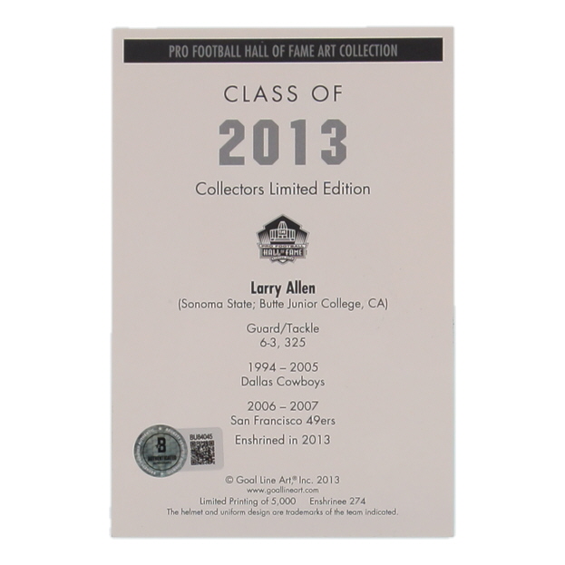 Larry Allen Signed 2013 LE Cowboys Pro Football Hall of Fame Art Series Football Card (Beckett)