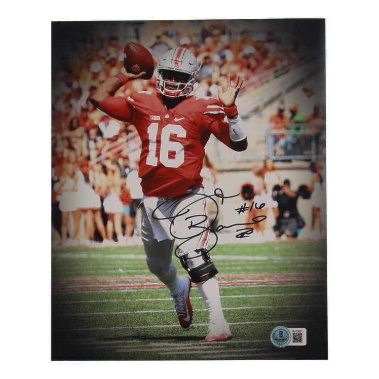 J.T. Barrett Signed Ohio State Buckeyes 8x10 Photo (Beckett)