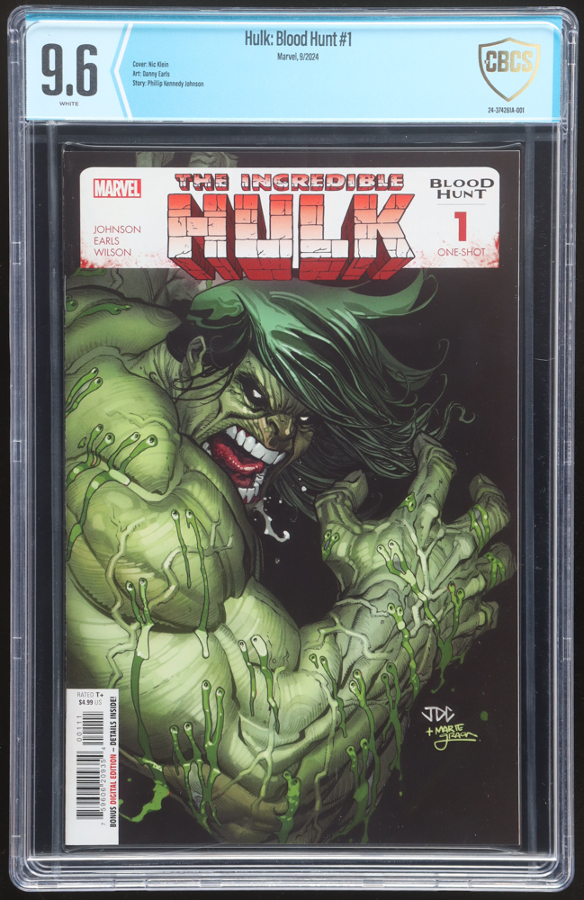 September 2024 "Hulk: Blood Hunt" Issue #1 Marvel comic book has been graded CBCS 9.6. Please see photos for details regarding the condition of the comic.