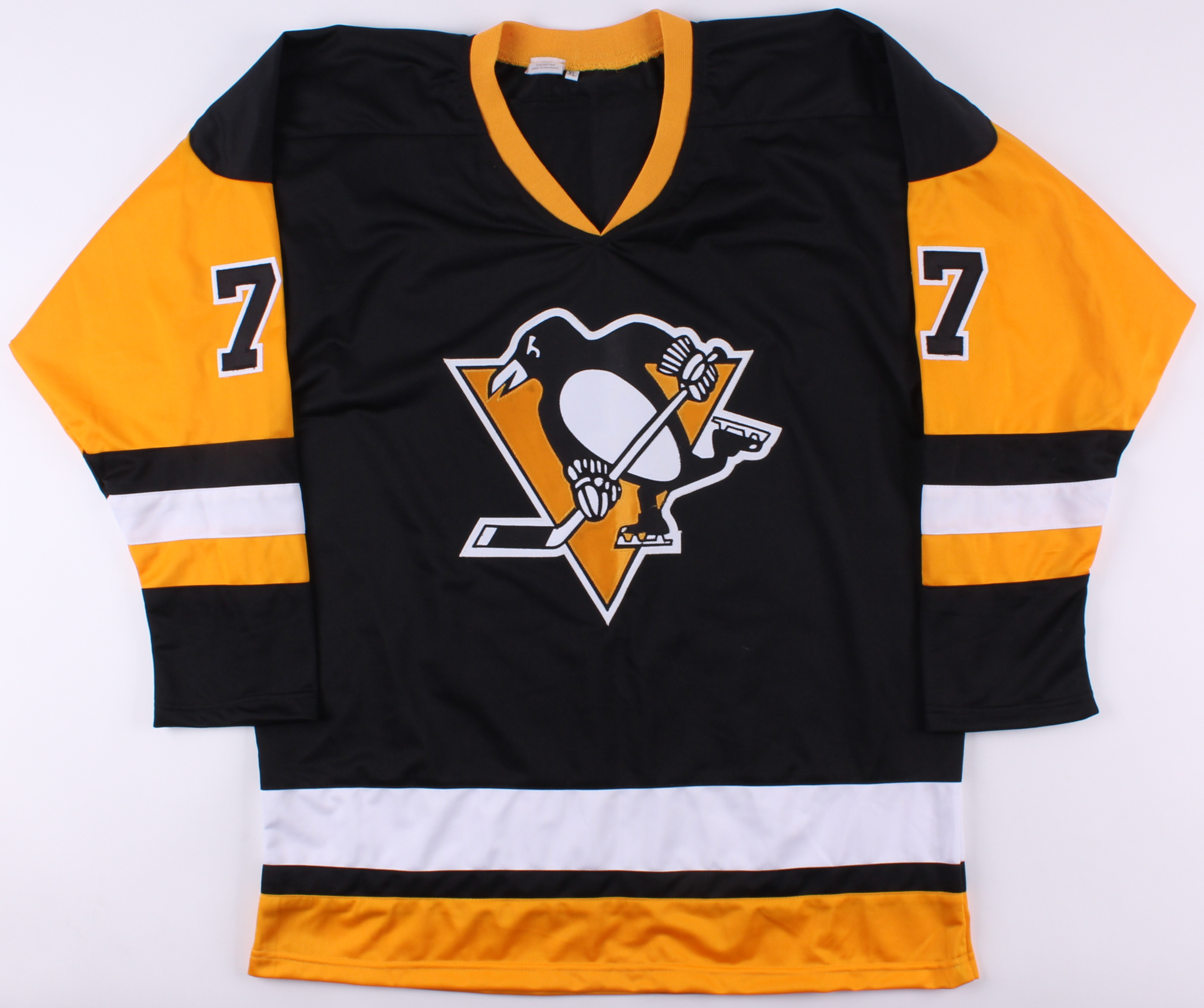 Custom on-ice style jersey. Everything sewn on, size XL. Hand-signed in black felt-tip pen by Paul Coffey (HOF).