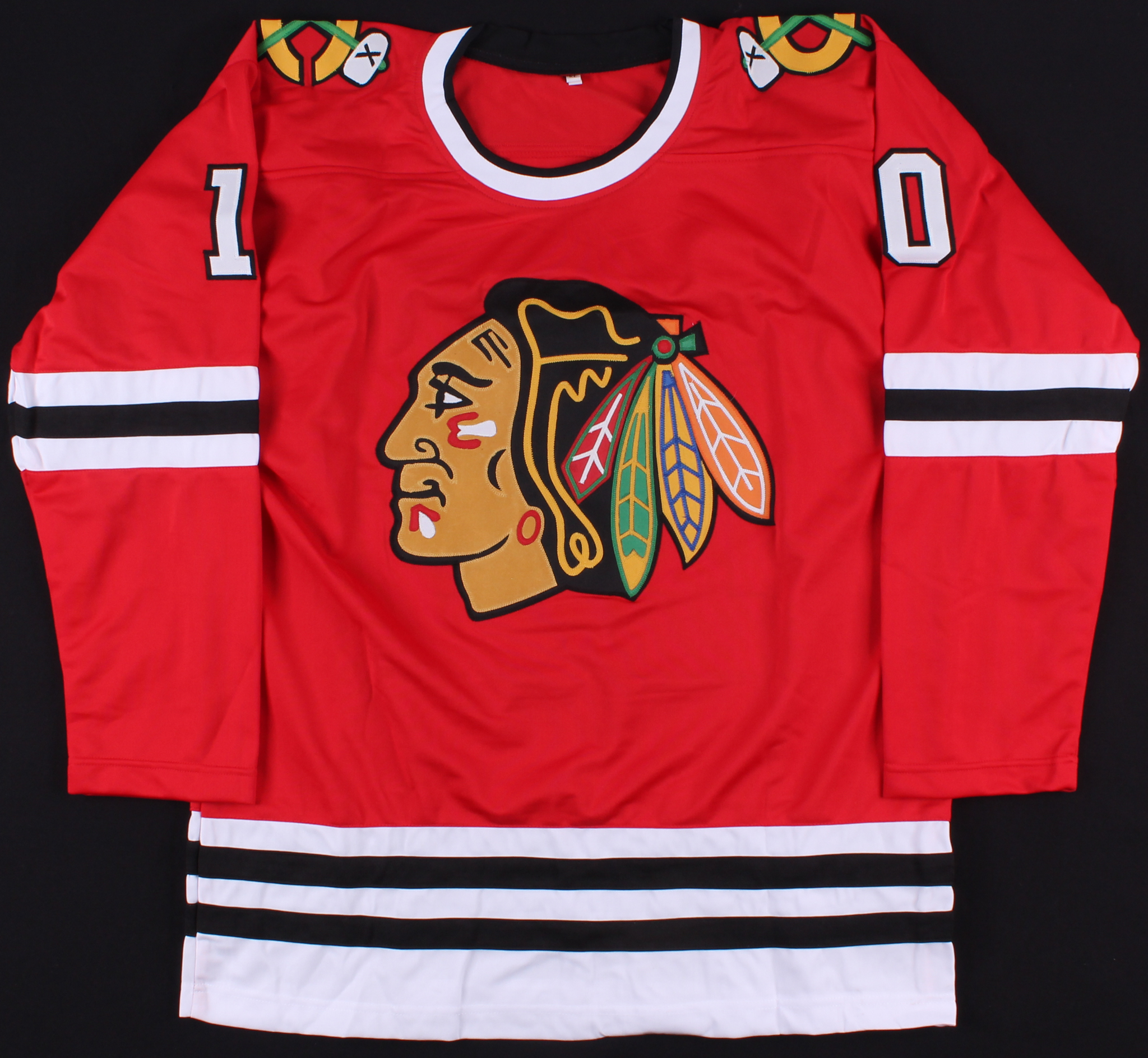 Custom jersey. Everything is sewn on, size XL. Hand-signed by Patrick Sharp.