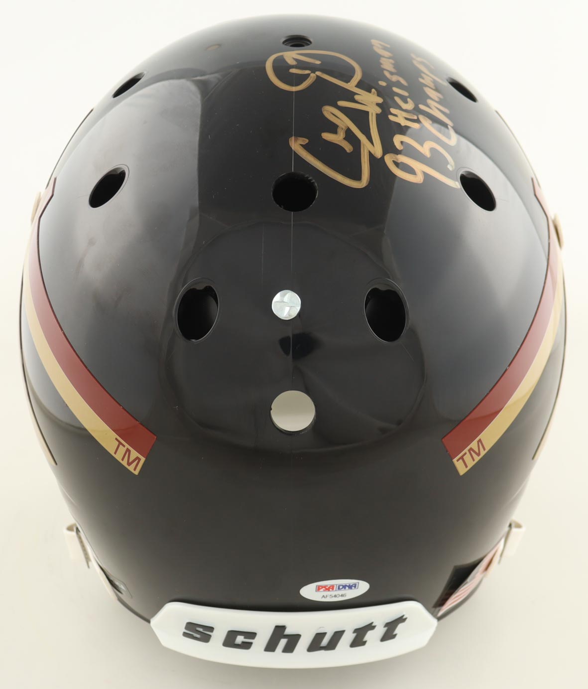 Schutt Florida State Seminoles full-size replica helmet. Hand-signed and inscribed by Charlie Ward.