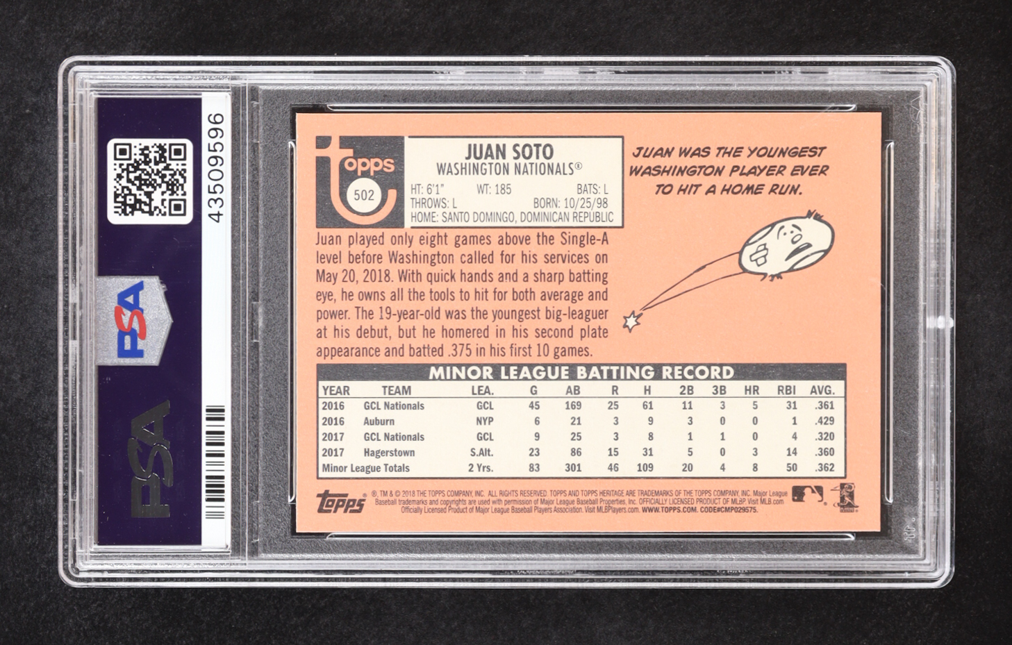 Juan Soto 2018 Topps Heritage #502 RC (PSA 10)