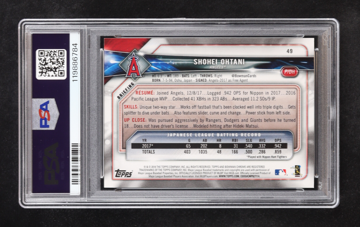 Shohei Ohtani 2018 Bowman #49 RC (PSA 9)
