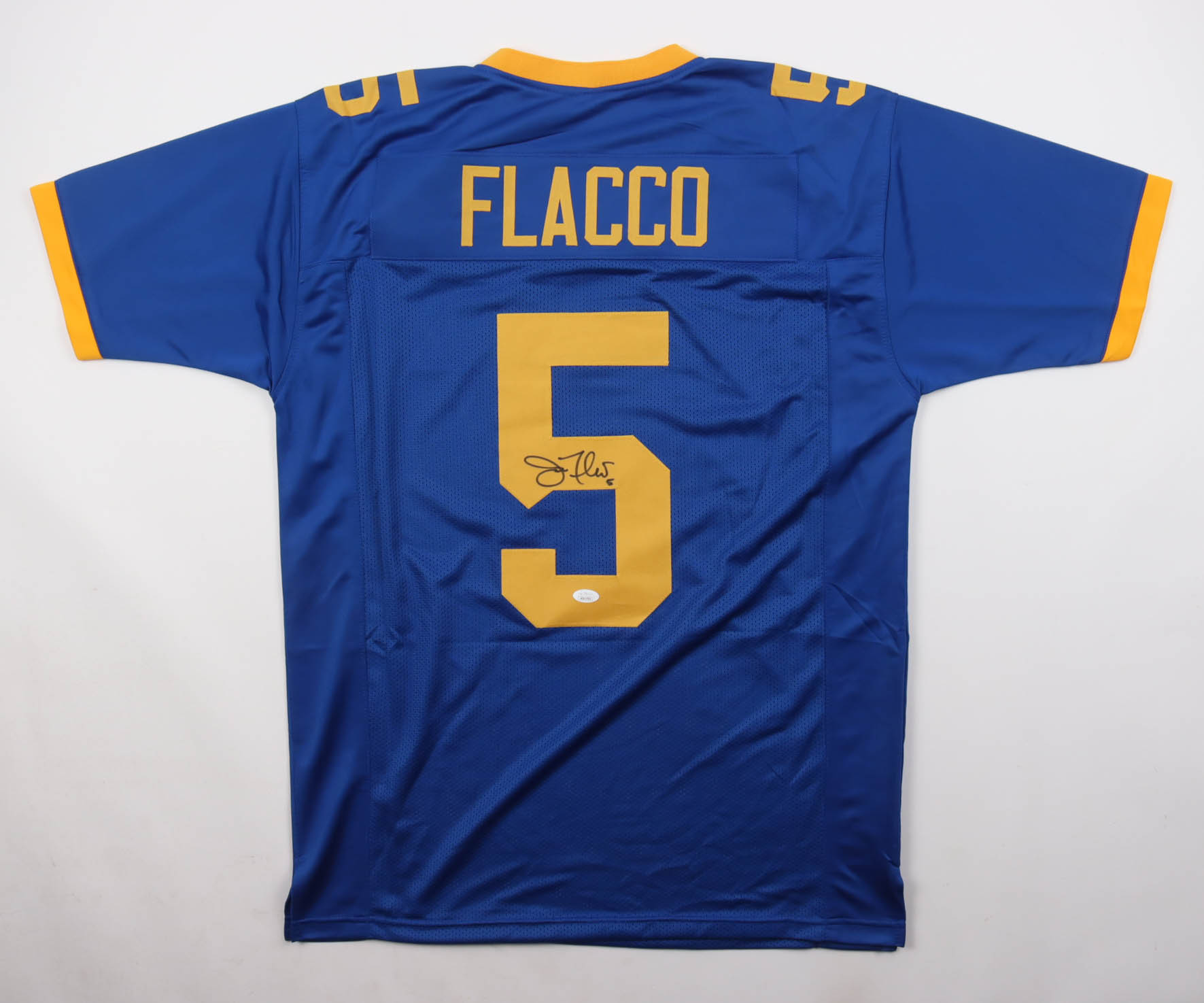 Custom jersey with everything sewn on, size XL. Hand-signed by Joe Flacco.