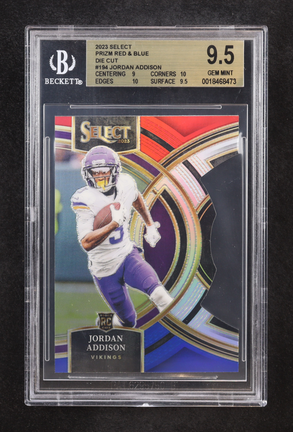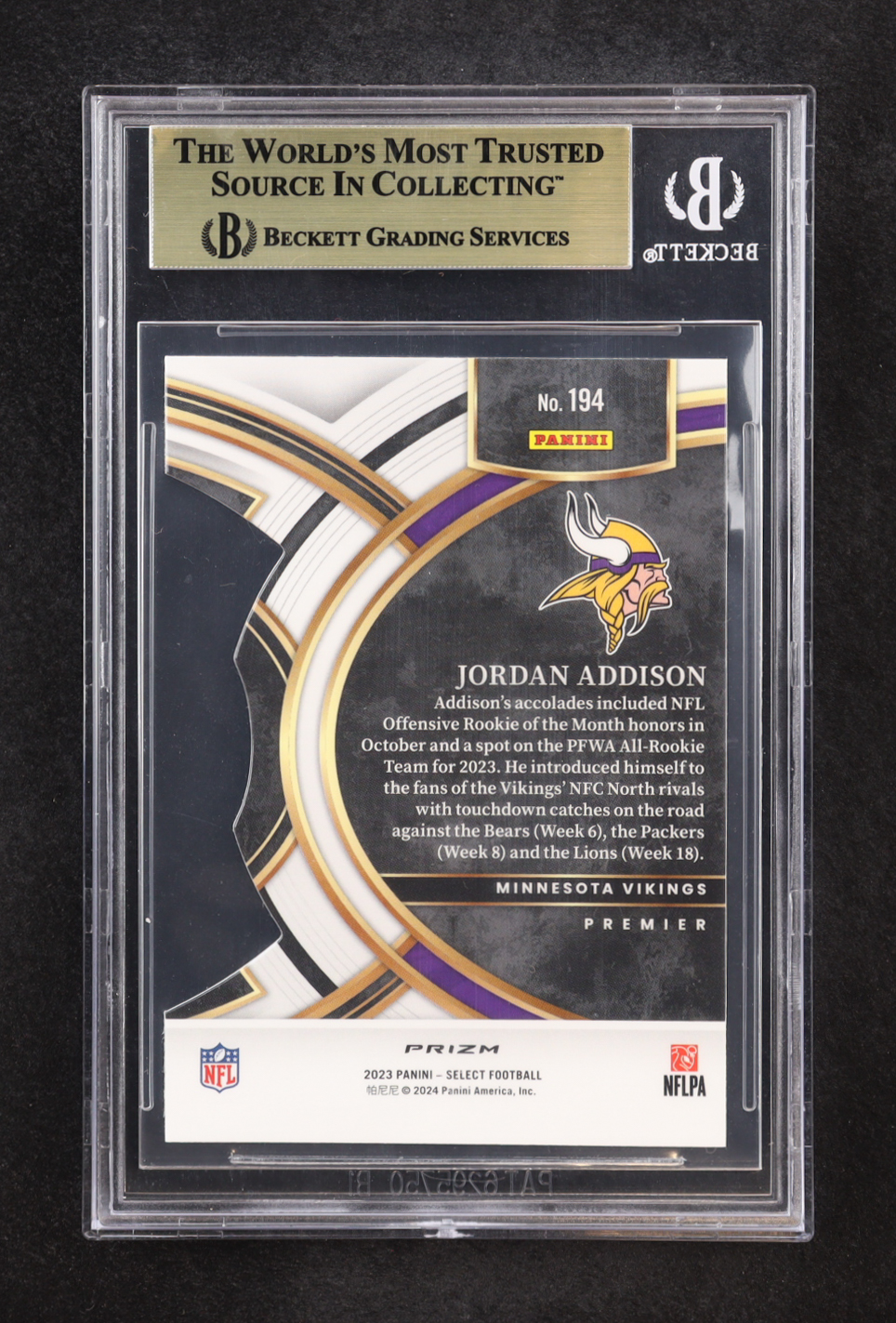 Jordan Addison 2023 Select Prizm Red and Blue Die Cut #194 RC (BGS 9.5)