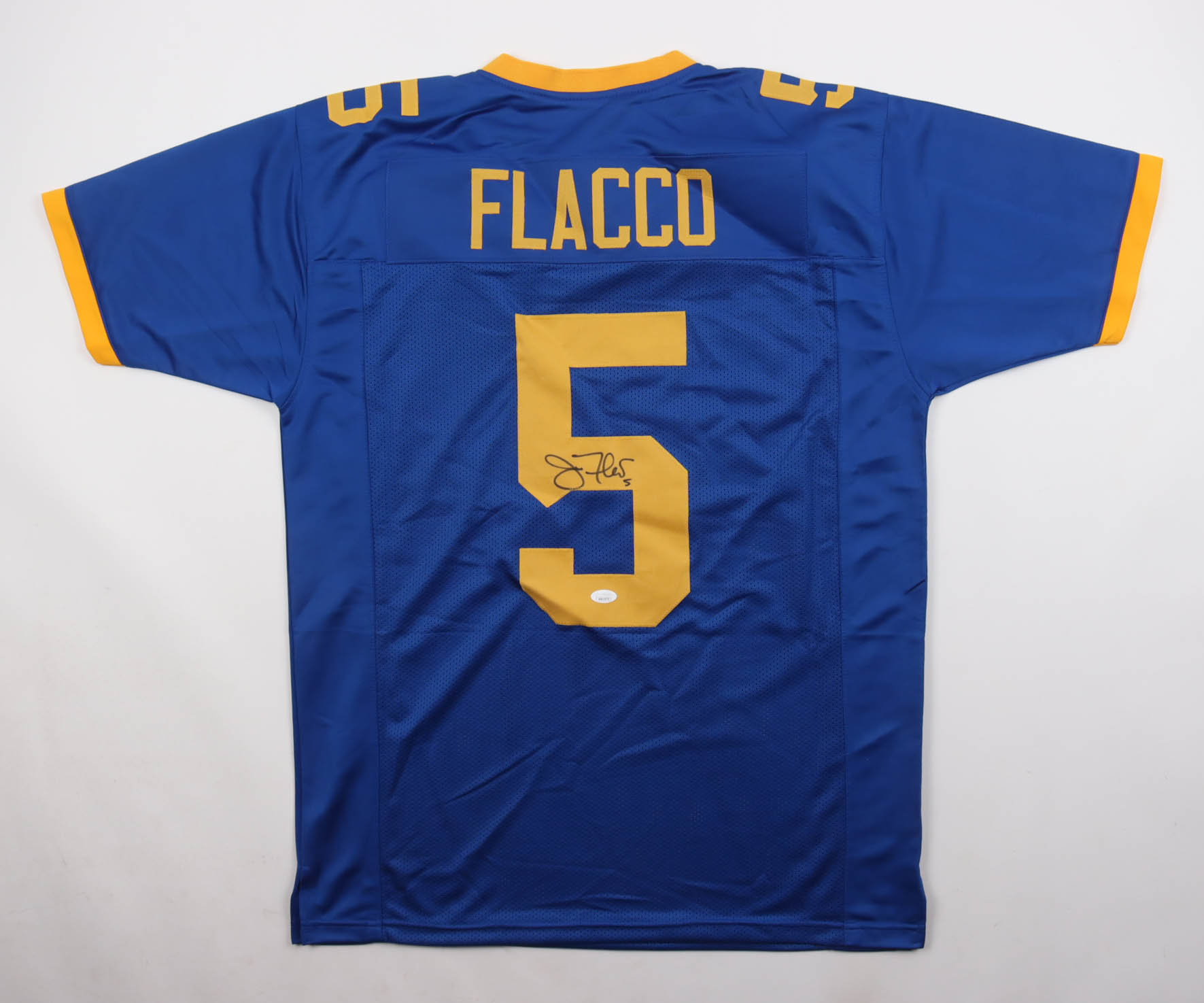 Custom jersey with everything sewn on, size XL. Hand-signed by Joe Flacco.