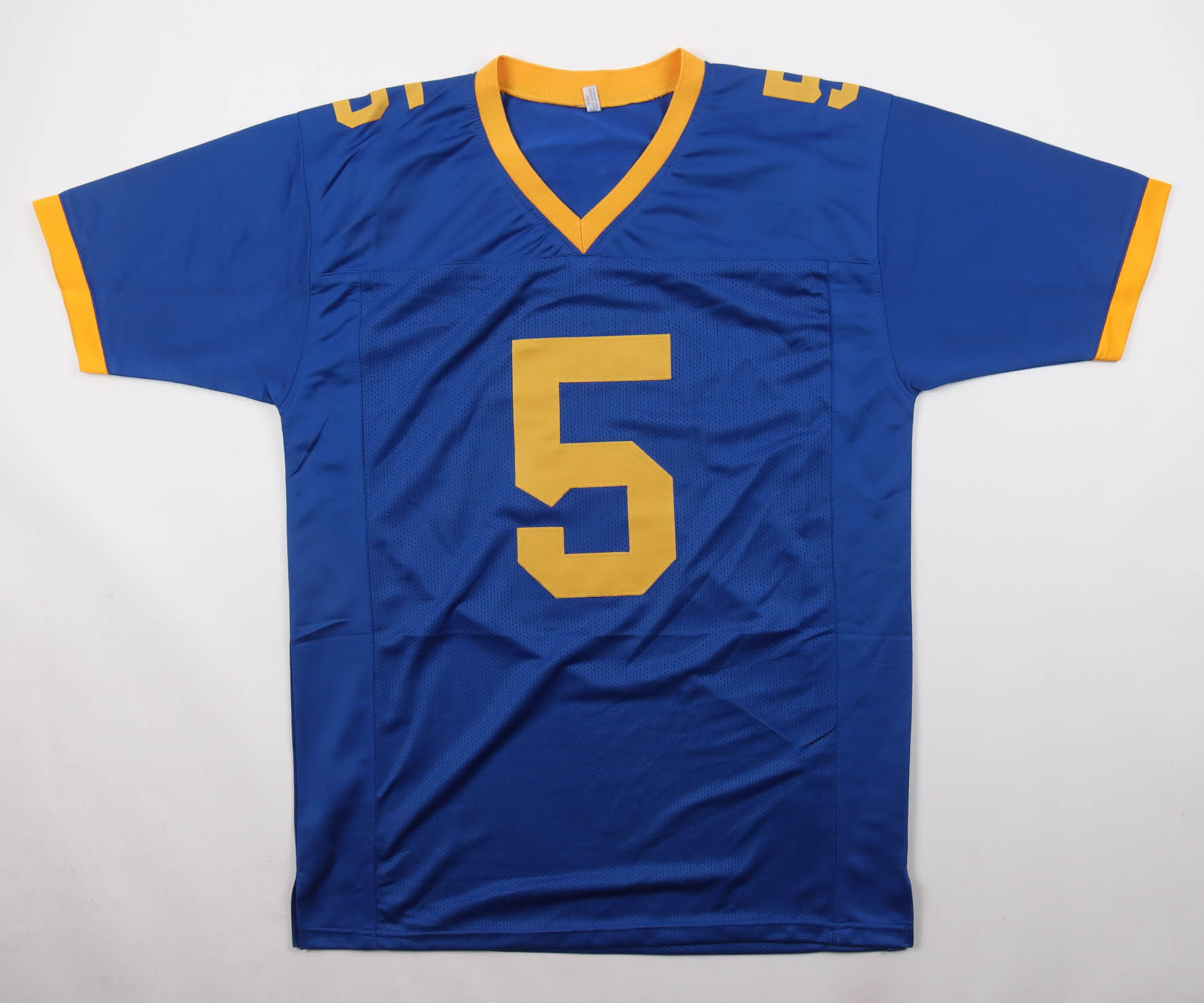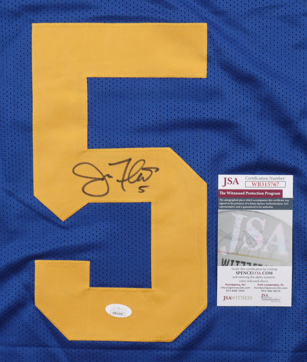 Custom jersey with everything sewn on, size XL. Hand-signed by Joe Flacco.