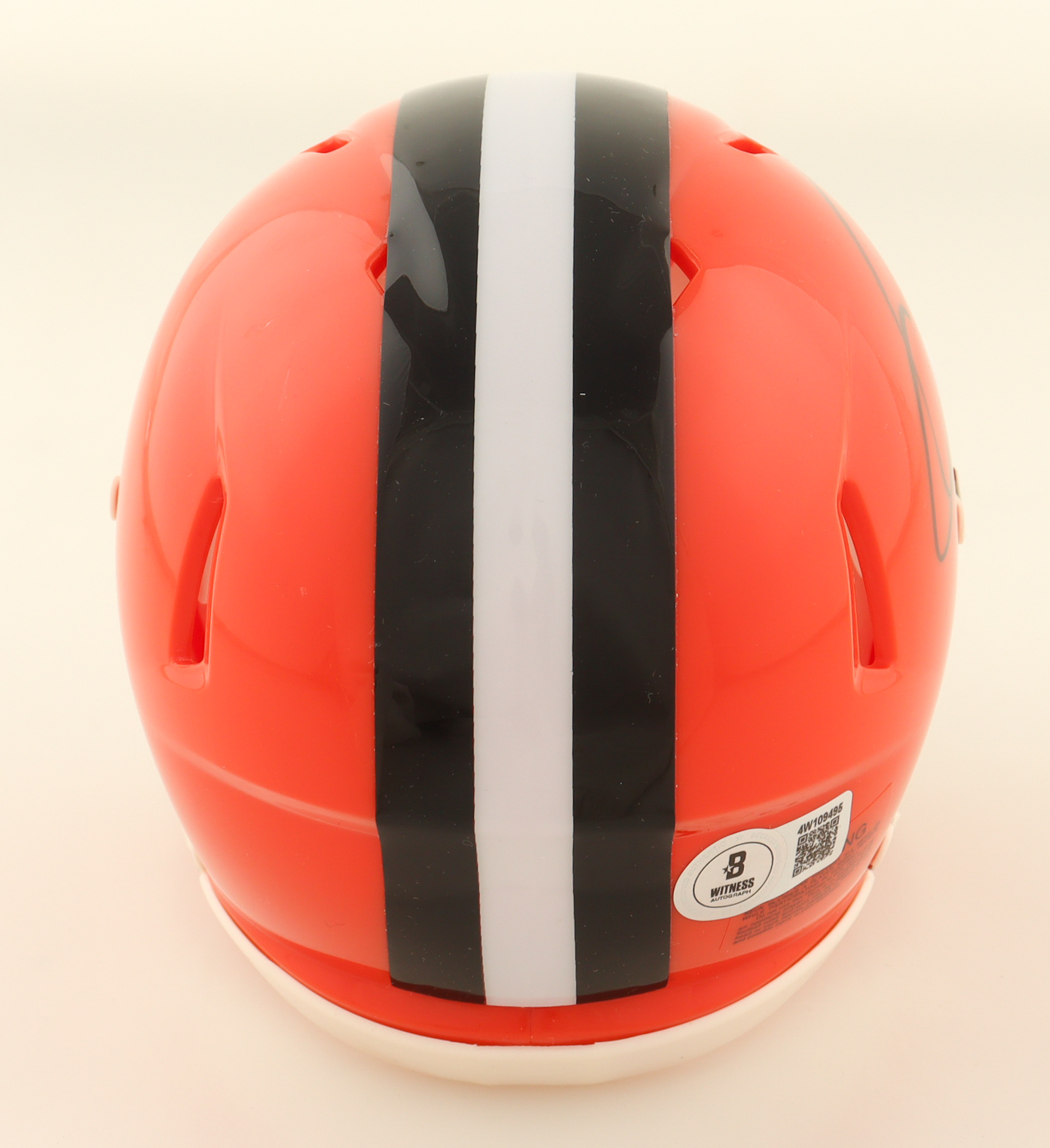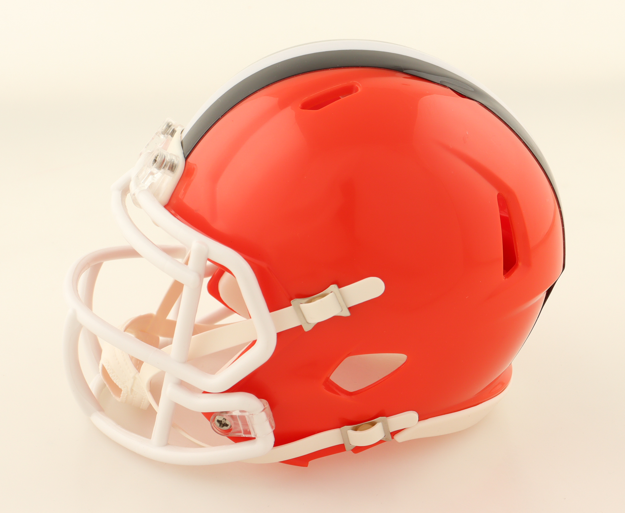 Riddell Cleveland Browns Speed Mini Helmet has been hand-signed by Quinshon Judkins. Please note, the signature is smudged.
