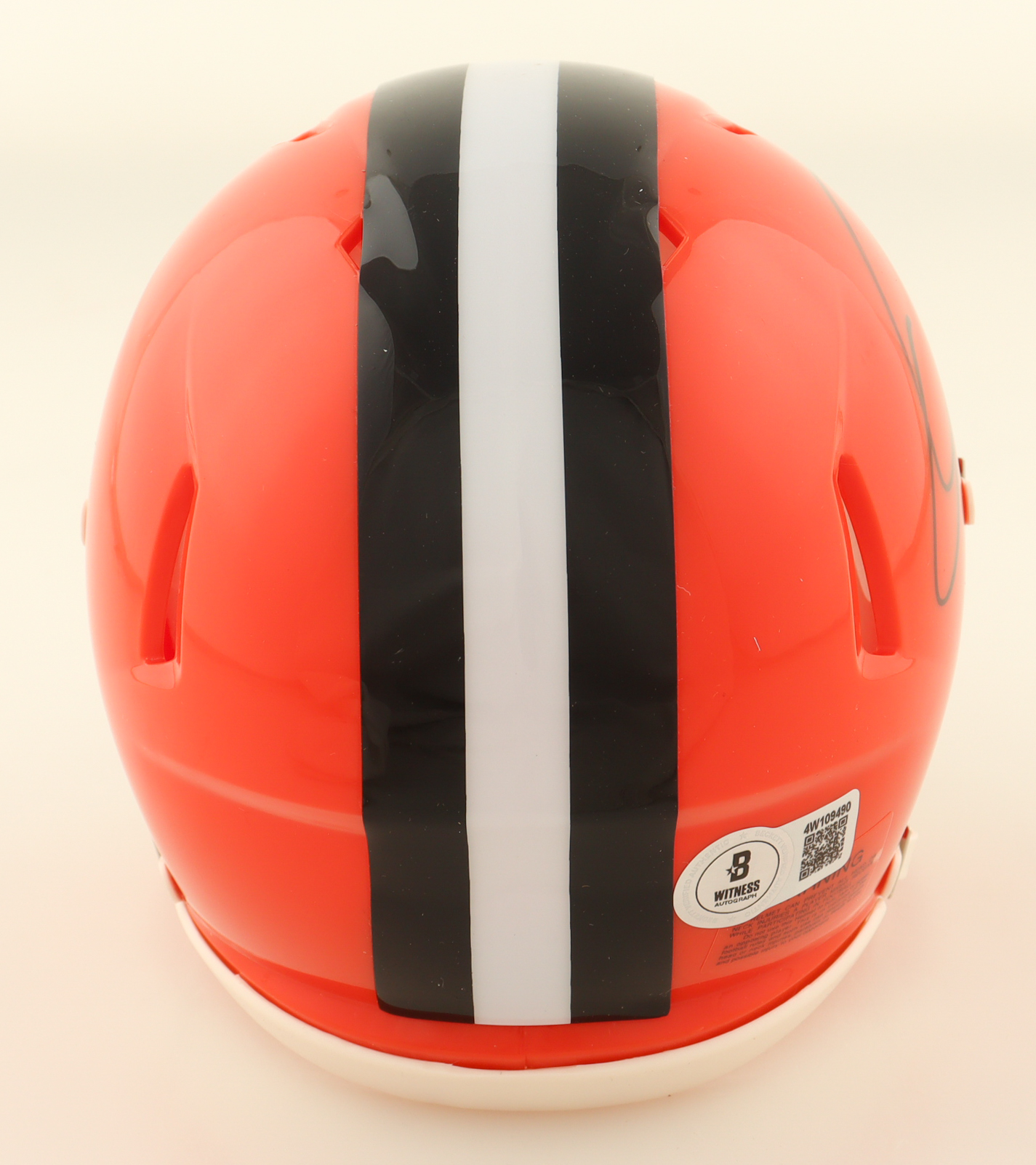 Riddell Cleveland Browns Speed Mini Helmet has been hand-signed by Quinshon Judkins. Please note, the signature is smudged.