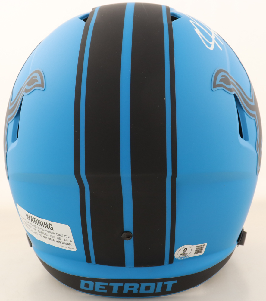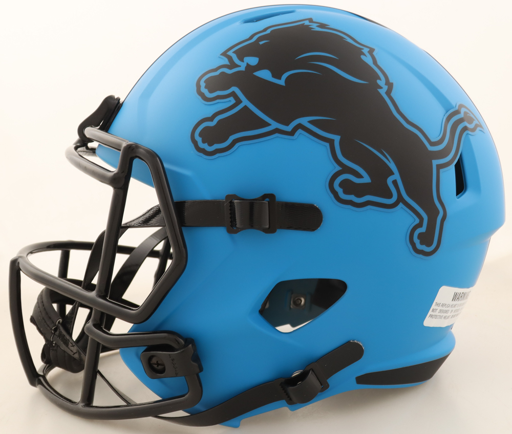 Riddell Detroit Lions full-size replica Rave Alternate Speed helmet. Hand-signed by Calvin Johnson (HOF).