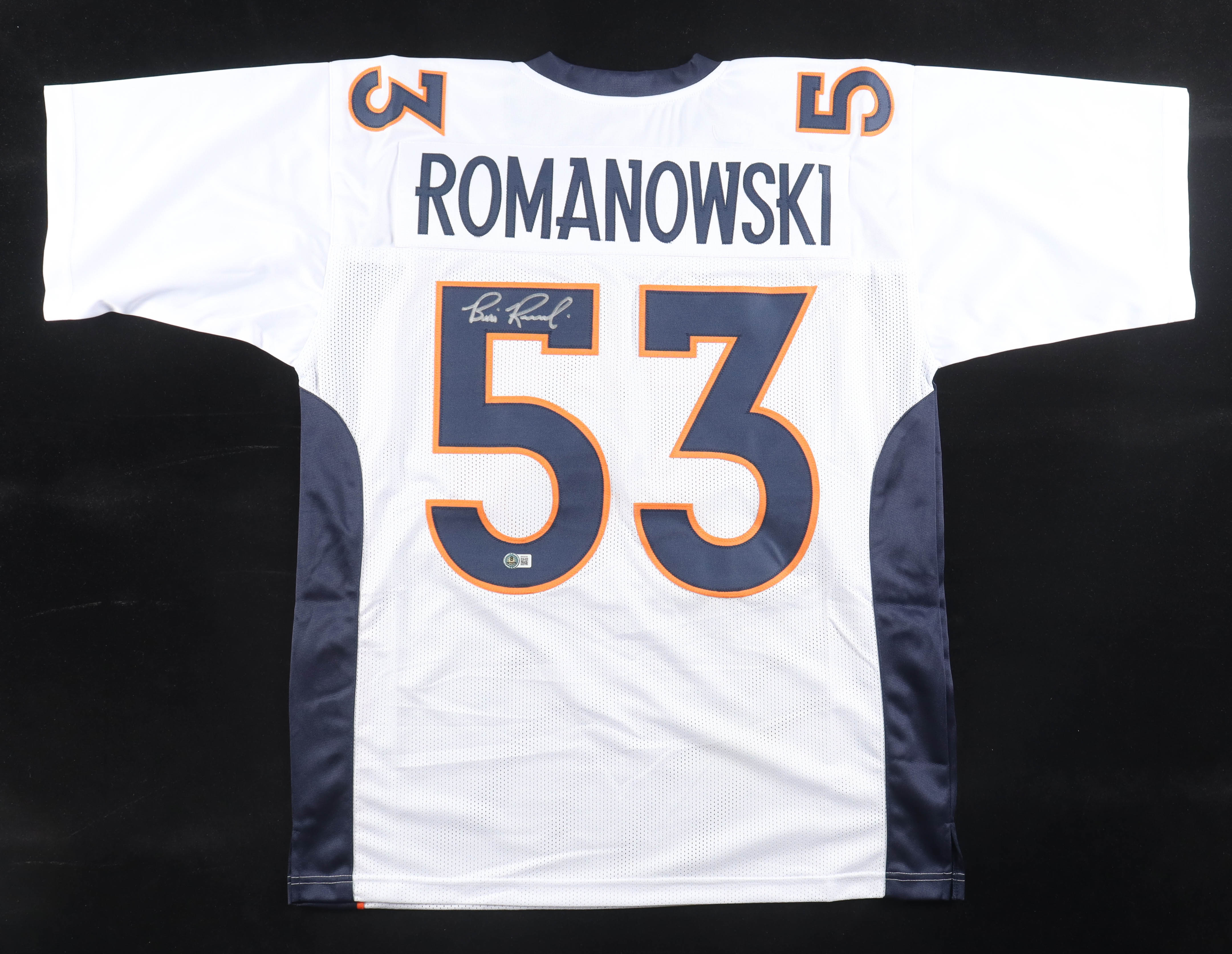 Custom jersey with everything sewn on, size XL. Hand-signed by Bill Romanowski.
