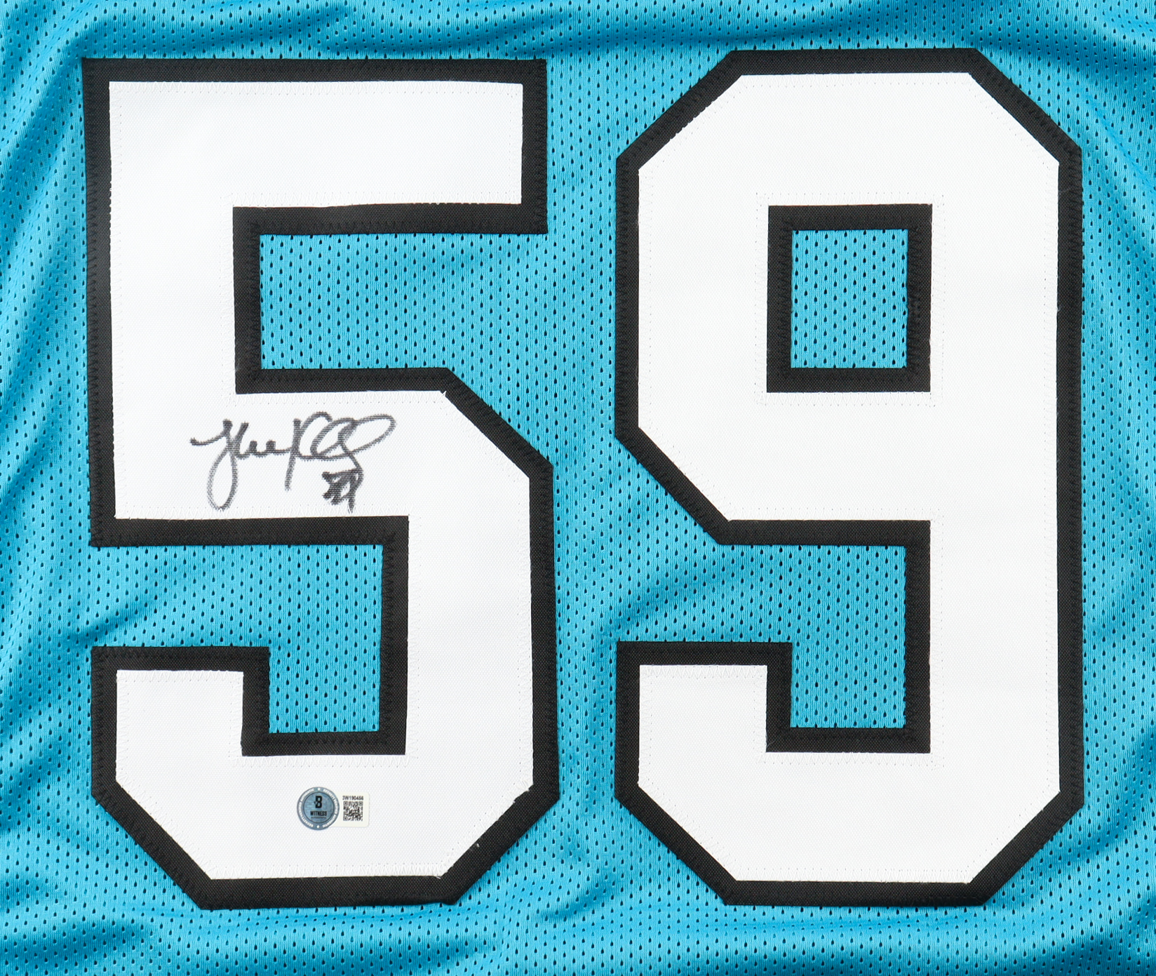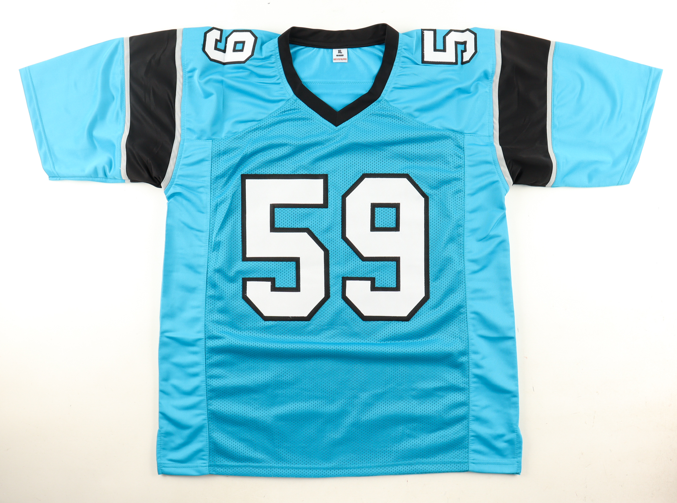 Custom style jersey. Everything is sewn on, size XL. Hand-signed by Luke Kuechly.