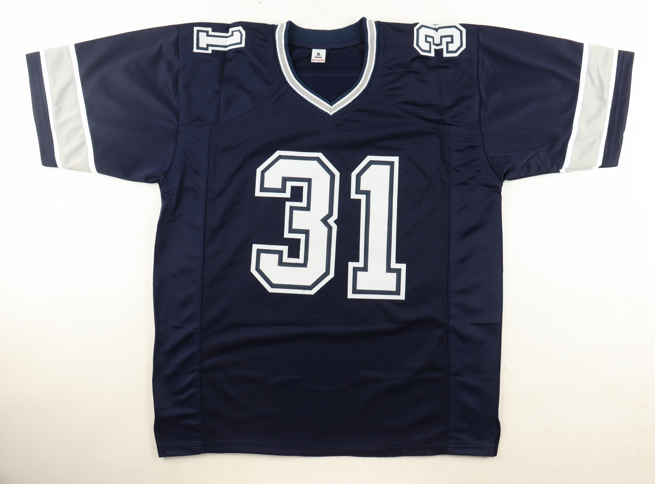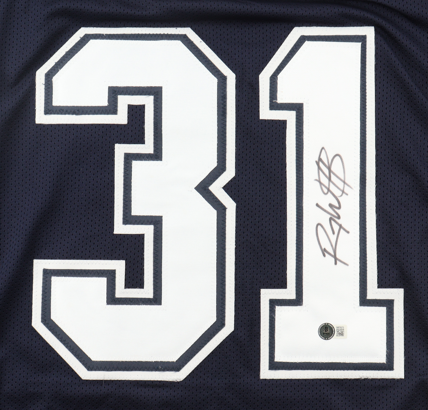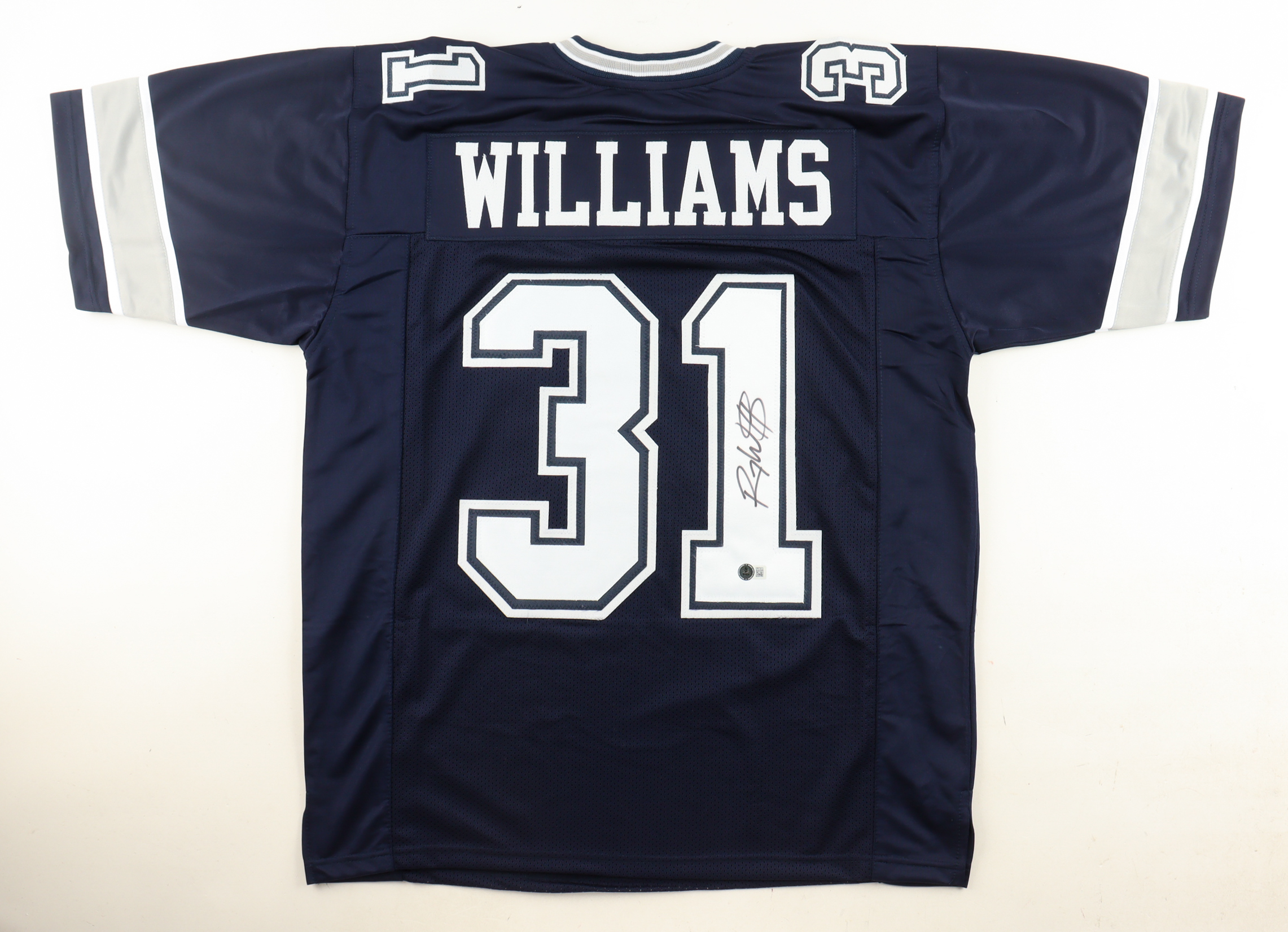 Custom jersey. Everything is sewn on, size XL. Hand-signed by Roy Williams.