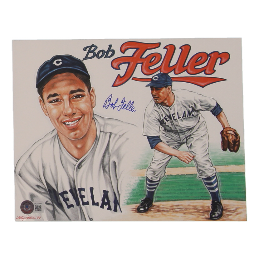Photo measures 8" x 10" in size and has been hand-signed by Bob Feller (D. 2010, Cleveland Indians, HOF).