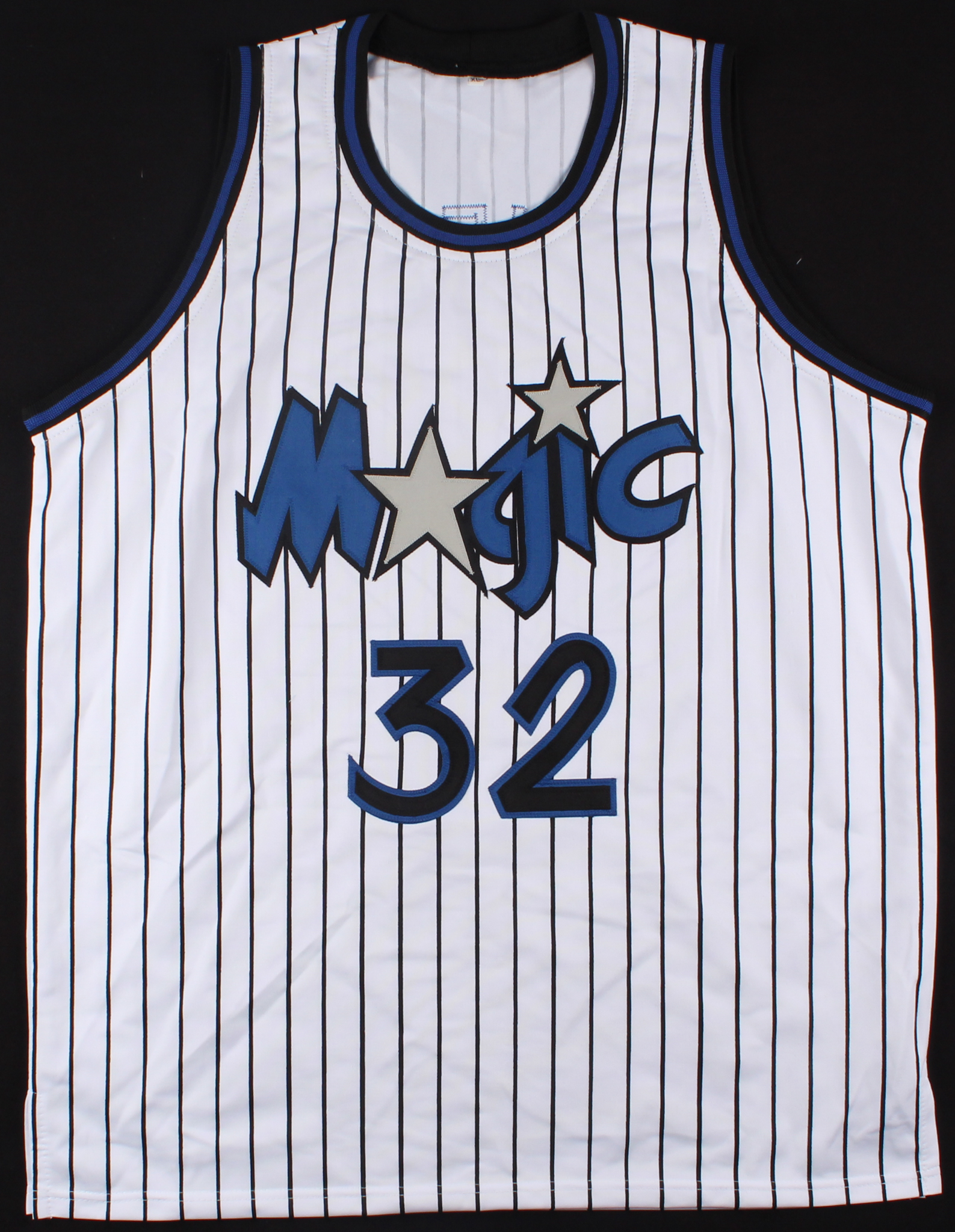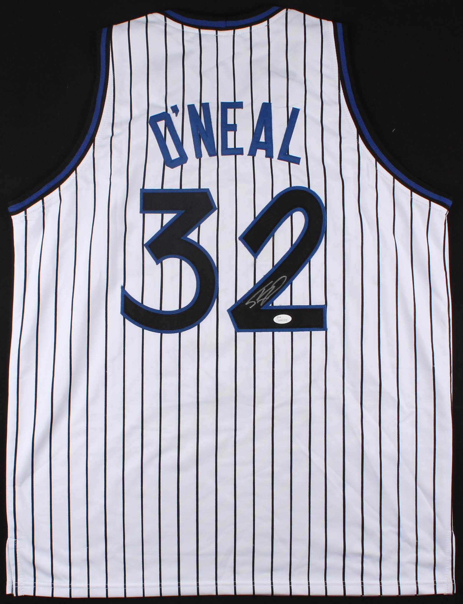 Custom jersey. Everything sewn on, size XL. Hand-signed in silver paint pen by Shaquille O'Neal.