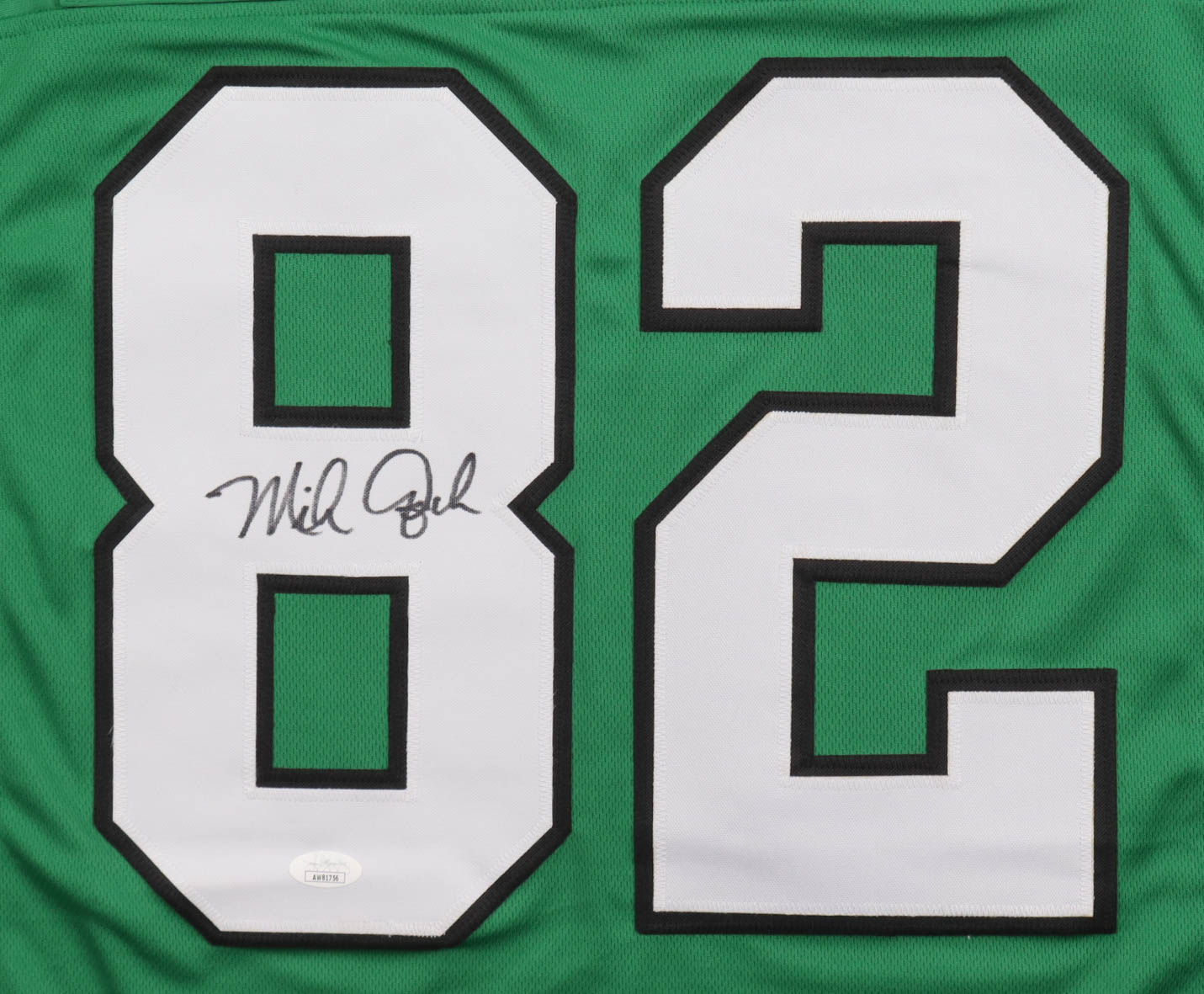 Custom jersey with everything sewn on, size XL. Hand-signed by Mike Quick.