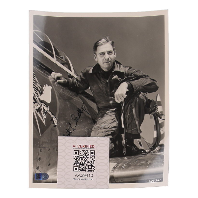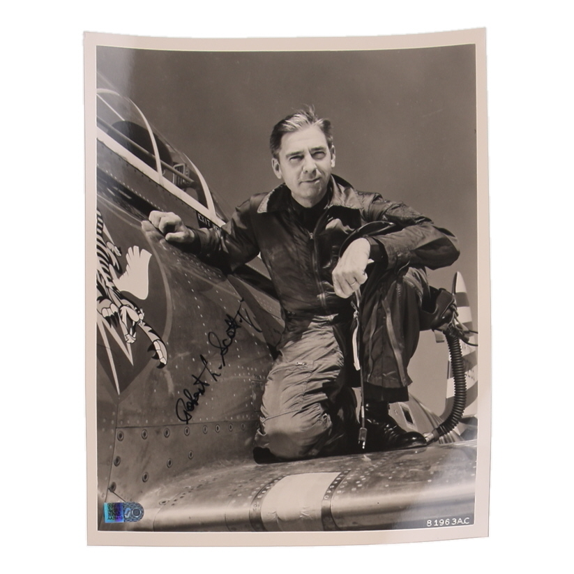 Photo measures 8" x 10" in size. Hand-signed by Robert L. Scott Jr. (D. 2006).