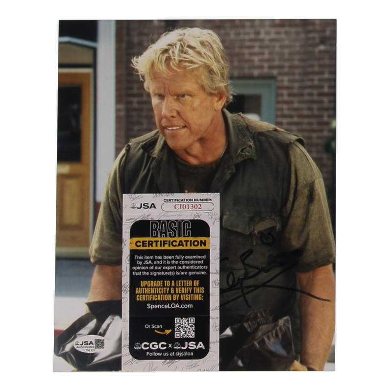Photo measures 8" x 10" in size. Hand-signed by Gary Busey.
