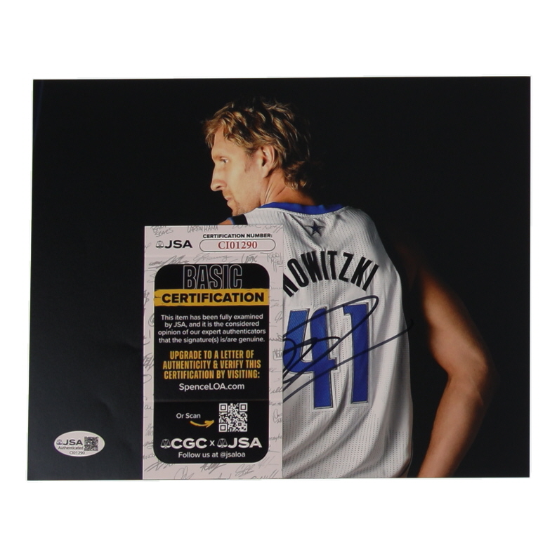 Photo measures 8" x 10" in size. Hand-signed by Dirk Nowitzki (Dallas Mavericks, HOF).