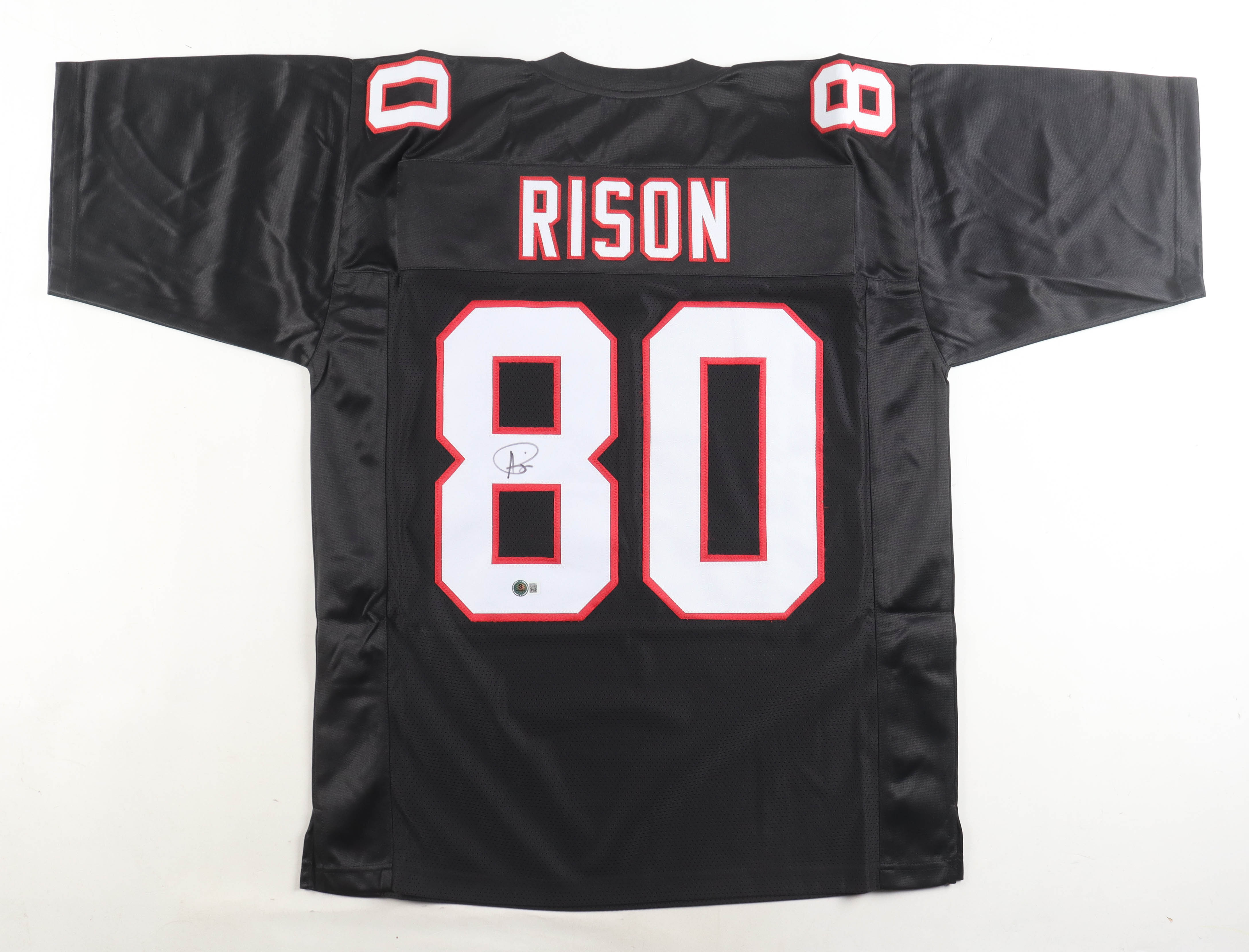Custom jersey with everything sewn on, size XL. Hand-signed by Andre Rison.