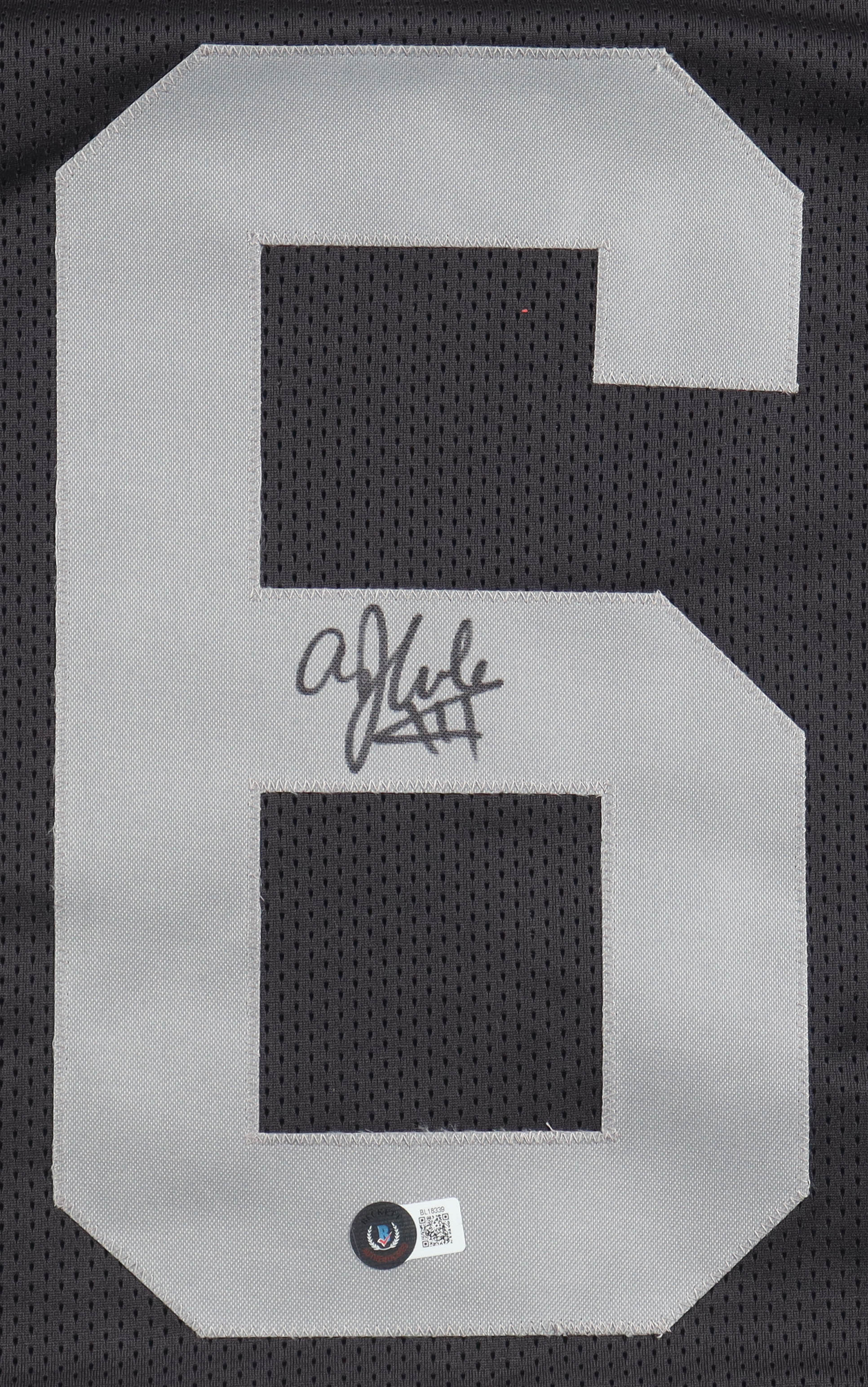Custom jersey. Everything sewn on, size XL. Hand-signed by A. J. Cole III.