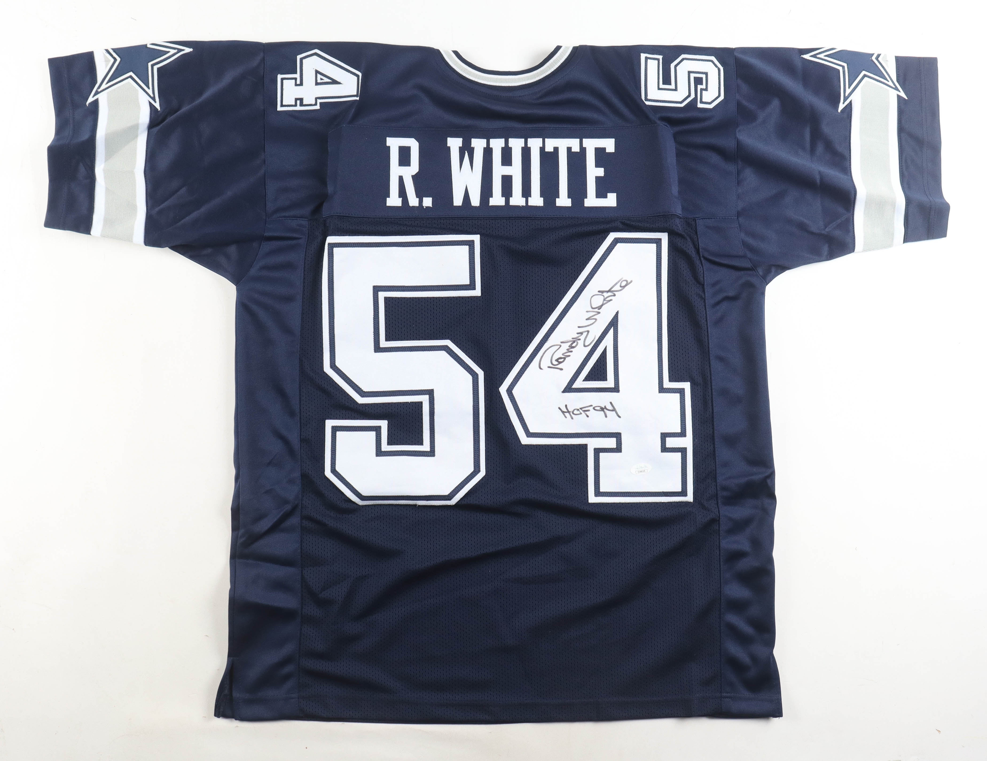 Custom jersey with everything sewn on, size L. Hand-signed and inscribed by Randy White (HOF). Please note, glue is visible through the reverse number. See photos regarding the condition of the item.