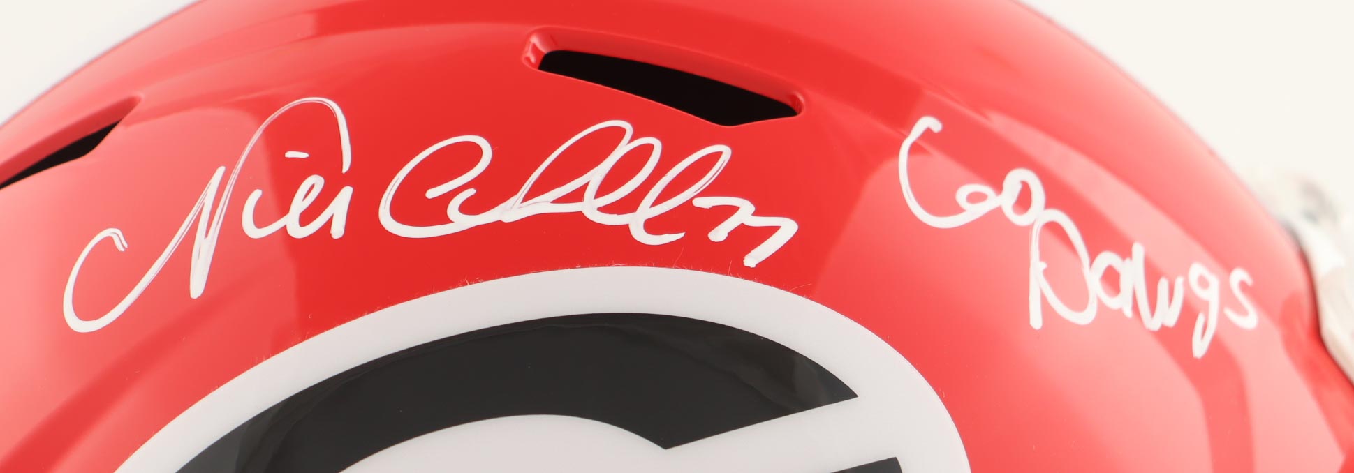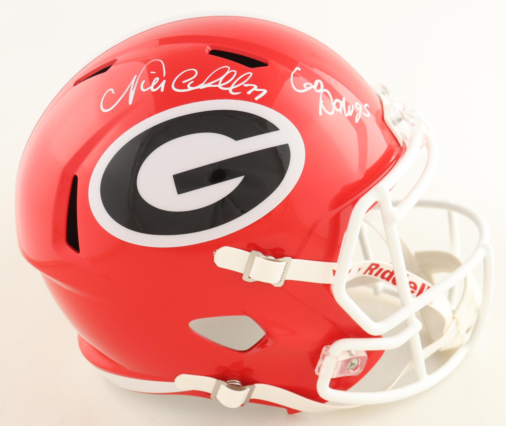 Riddell Georgia Bulldogs full-size replica Speed helmet. Hand-signed and inscribed by Nick Chubb.