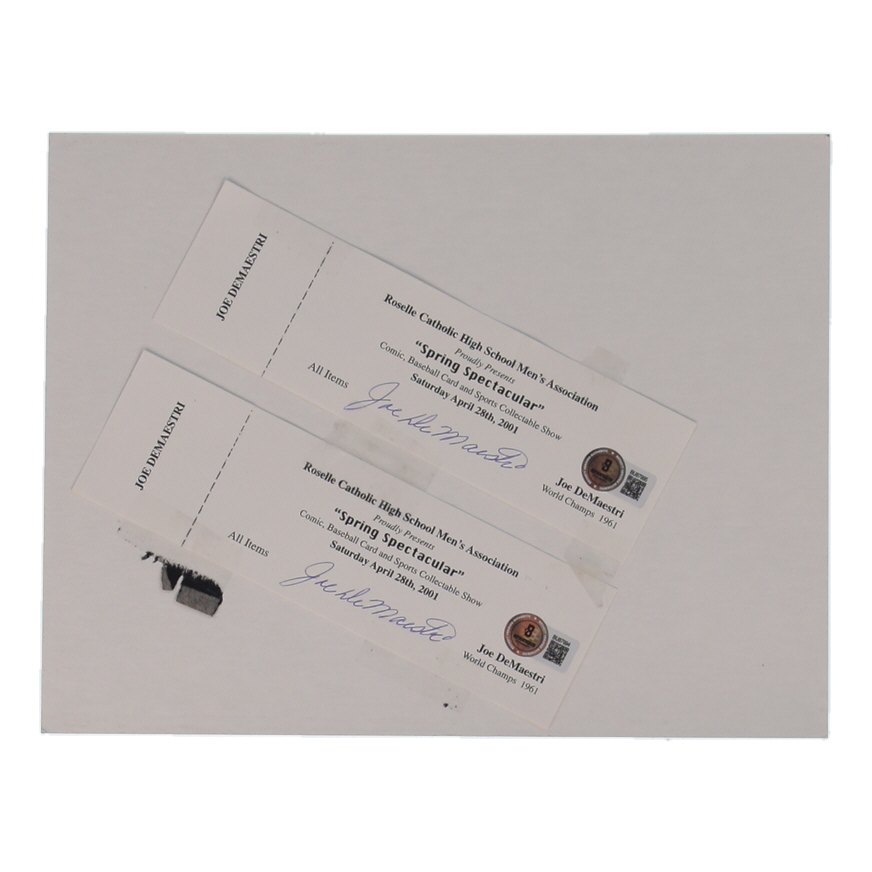 Show Tickets have been hand-signed by Joe DeMaestri (D. 2016, New York Yankees). Please note, both tickets are taped on board.
