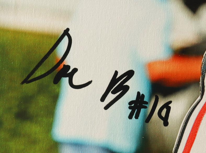 Canvas measures 20" x 24" in size and has been hand-signed by Deandre Baker.