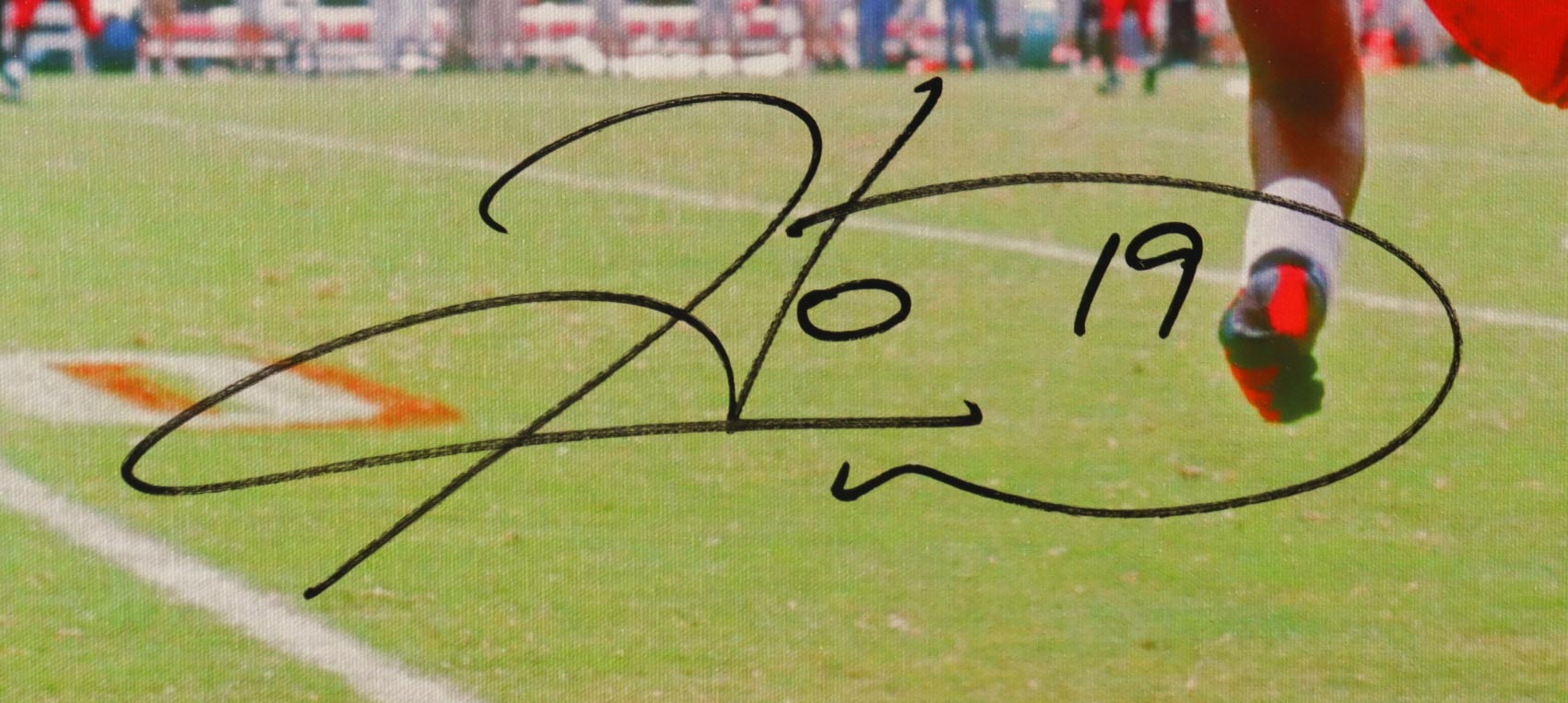 Canvas measures 20" x 24" in size and has been hand-signed by Hines Ward.