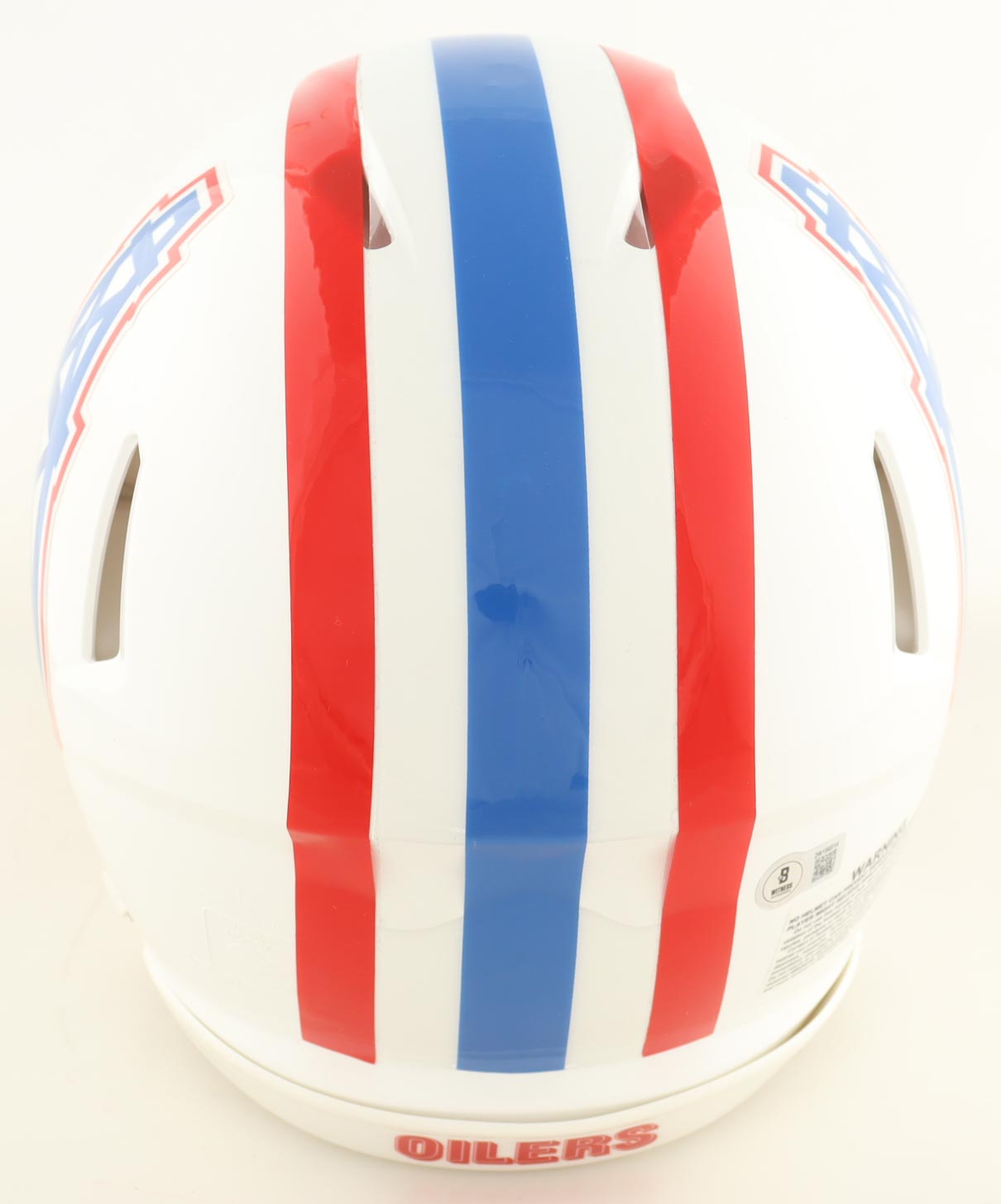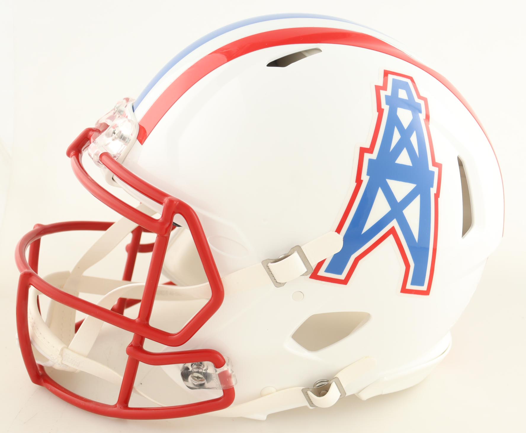 Riddell Houston Oilers full-size Authentic On-Field Throwback Speed Helmet. Hand-signed and inscribed by Warren Moon (HOF).