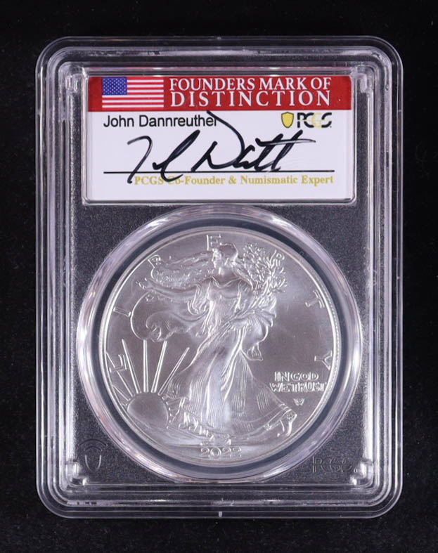 2022 American $1 Dollar Silver Eagle, First Day of Issue - John Dannreuther Signature Label (PCGS MS70)