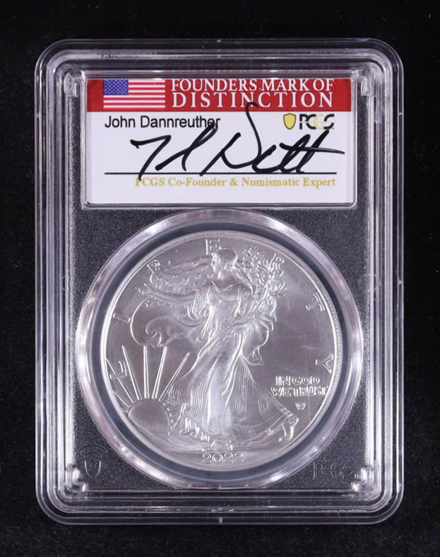 2022 American $1 Dollar Silver Eagle, First Day of Issue - John Dannreuther Signature Label (PCGS MS70)