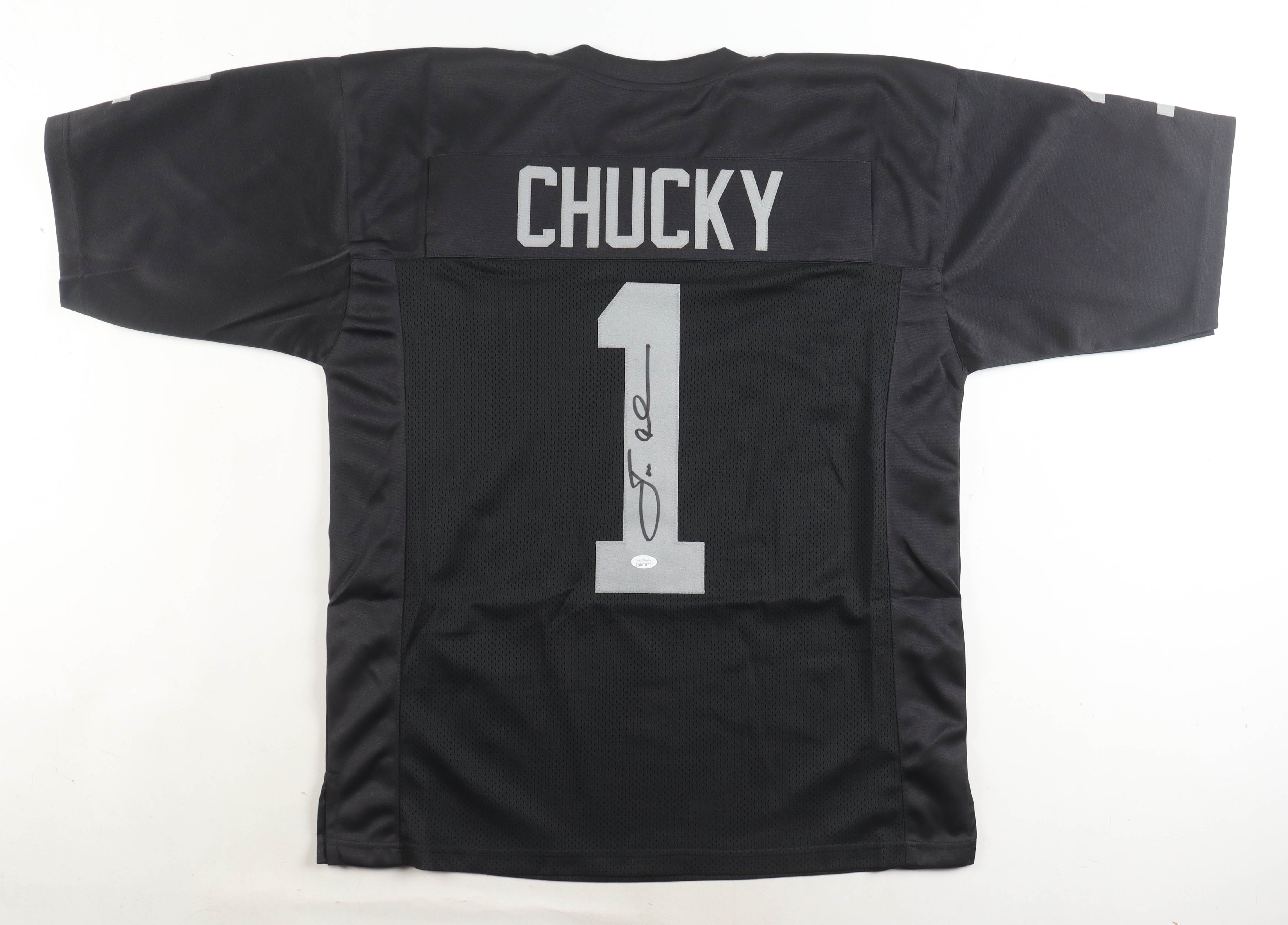 Custom jersey with everything sewn on, size XL. Hand-signed by Jon Gruden.