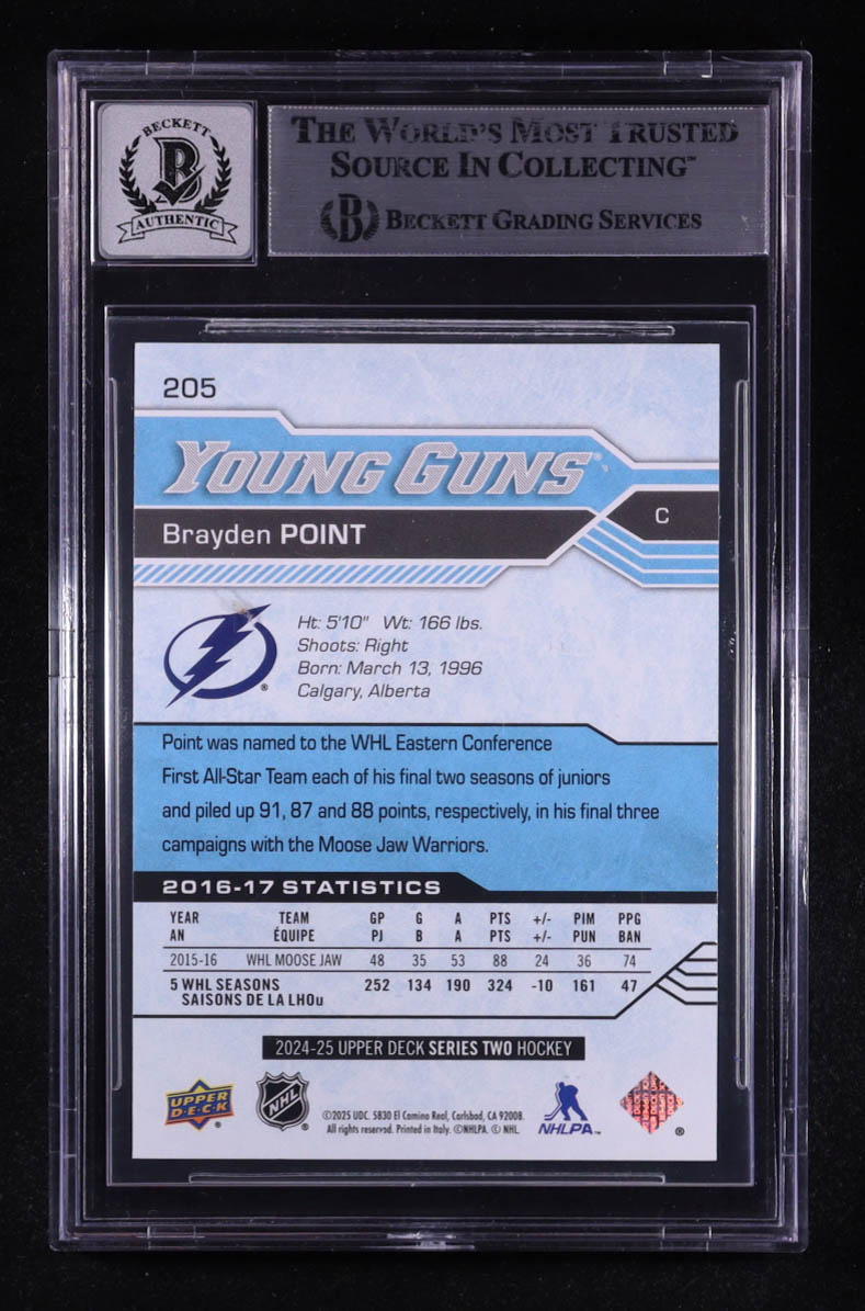 Brayden Point Signed 2024-25 Upper Deck Young Guns Renewed Series 2 #205 (BGS | Autograph Graded BGS 10)