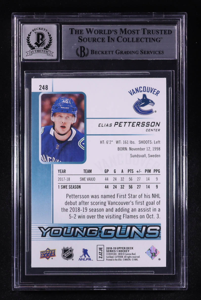 Elias Pettersson Signed 2018-19 Upper Deck Young Guns #248 RC (BGS | Autograph Graded BGS 10)