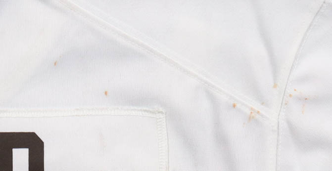 Nike jersey with everything printed on, size L. Hand-signed by Nick Chubb (Cleveland Browns). Please note, there is staining on the back of the jersey and the signature has bled. See photos regarding the condition of the item.