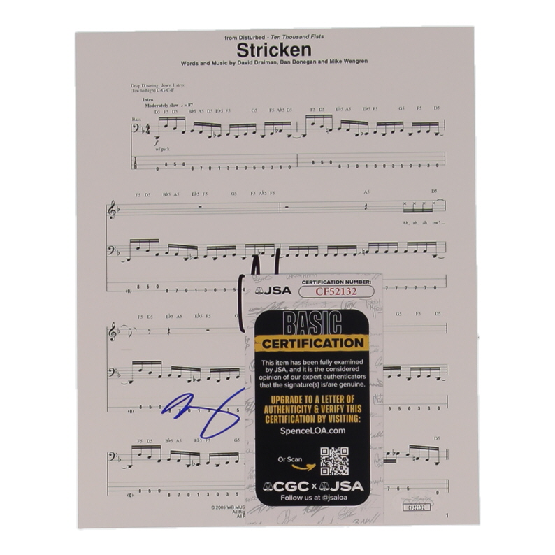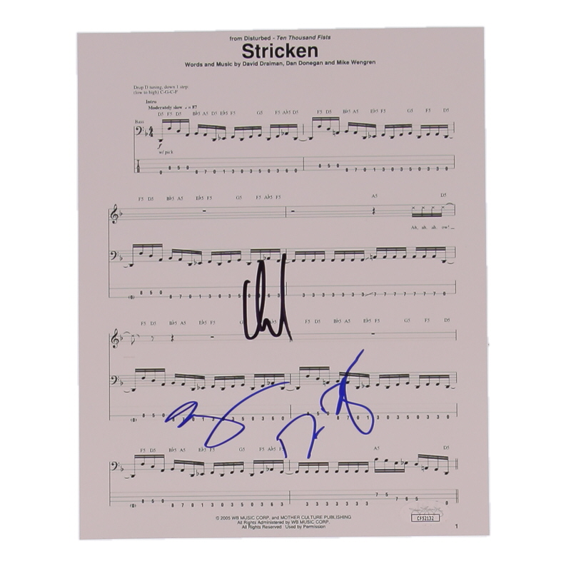 David Draiman, Dan Donegan & Mike Wengren Signed "Stricken" 8x10 Music Sheet (JSA)