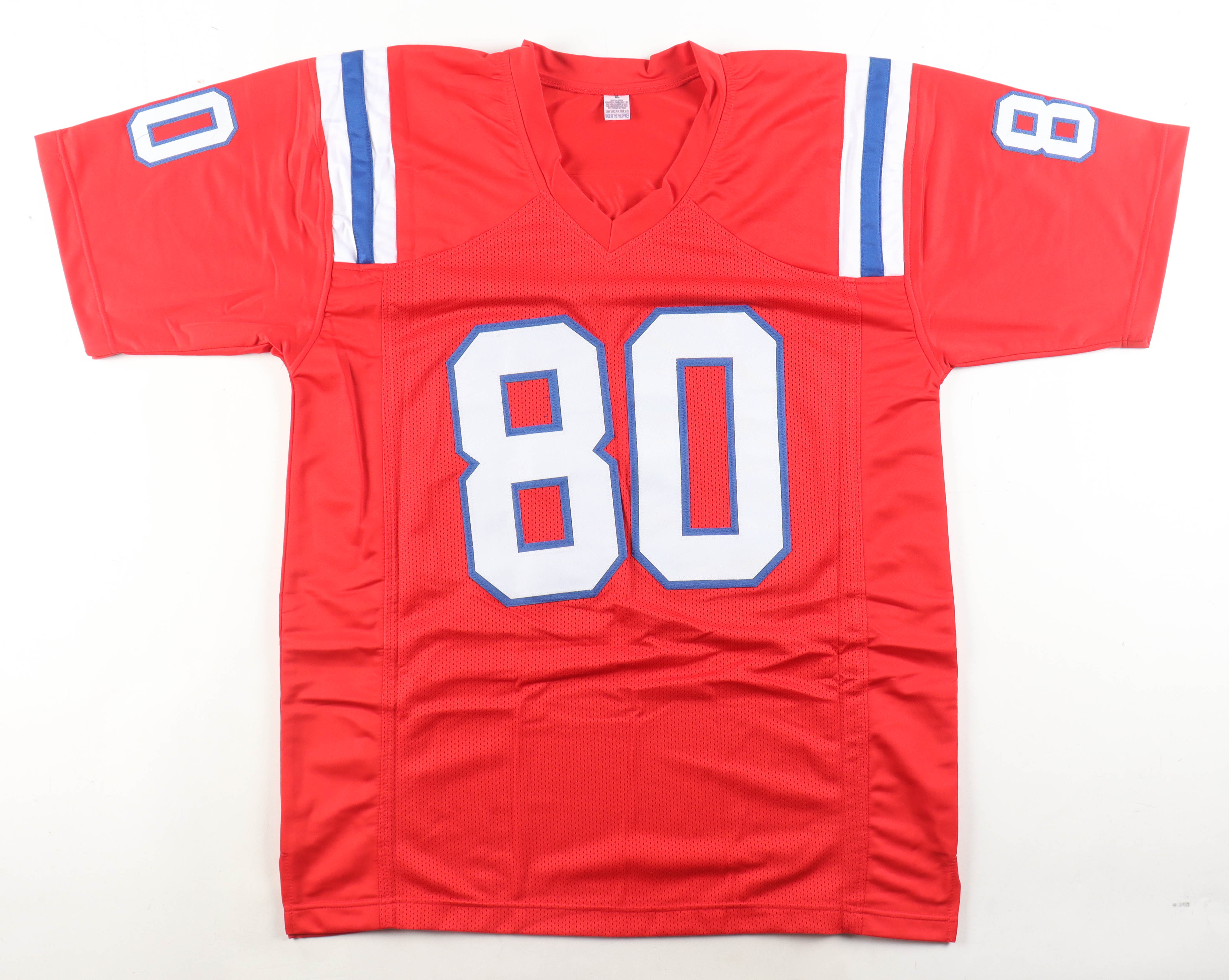 Custom jersey with everything sewn on, size XL. Hand-signed by Irving Fryar (New England Patriots).