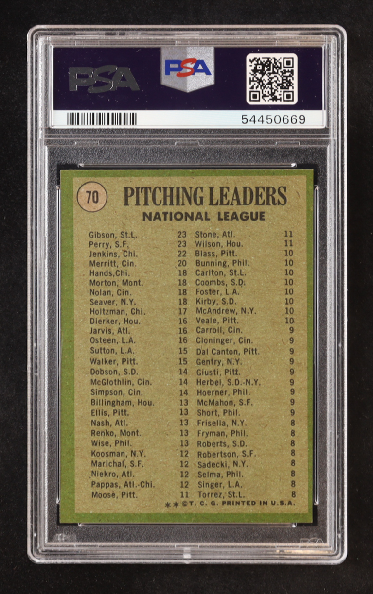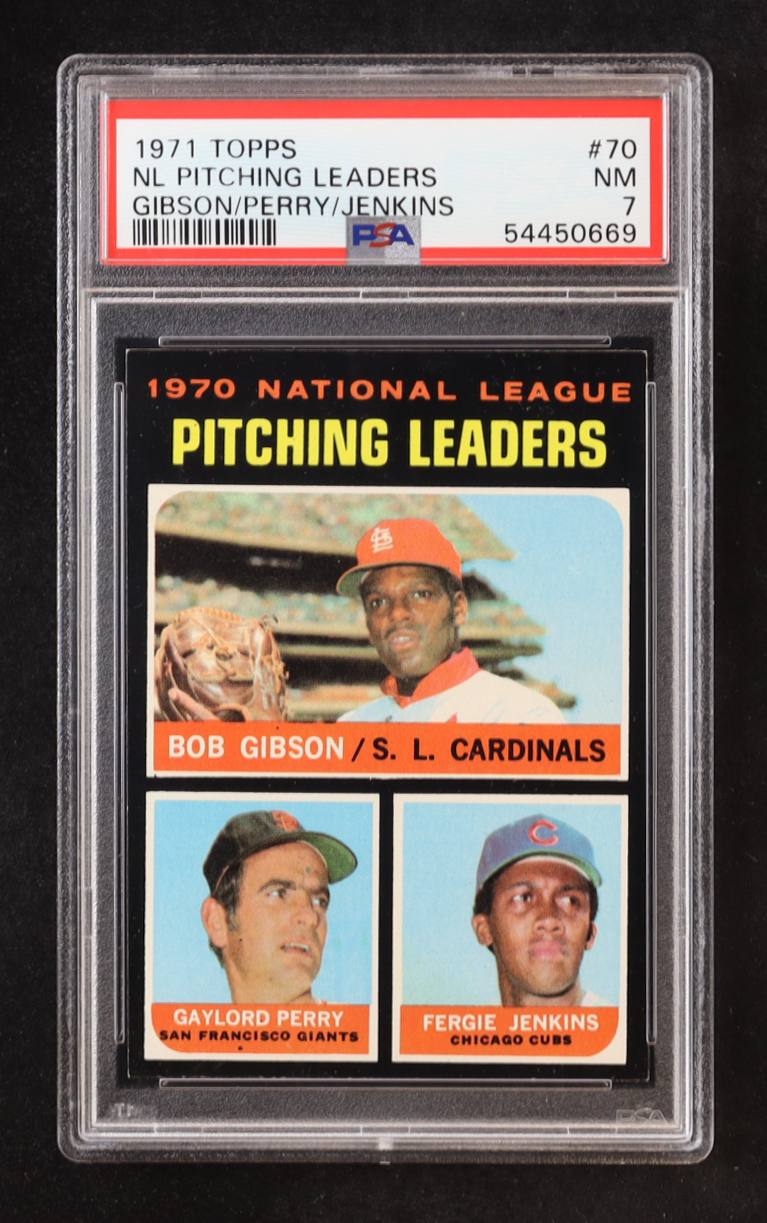 Bob Gibson / Gaylord Perry / Fergie Jenkins 1971 Topps #70 NL Pitching Leaders (PSA 7)