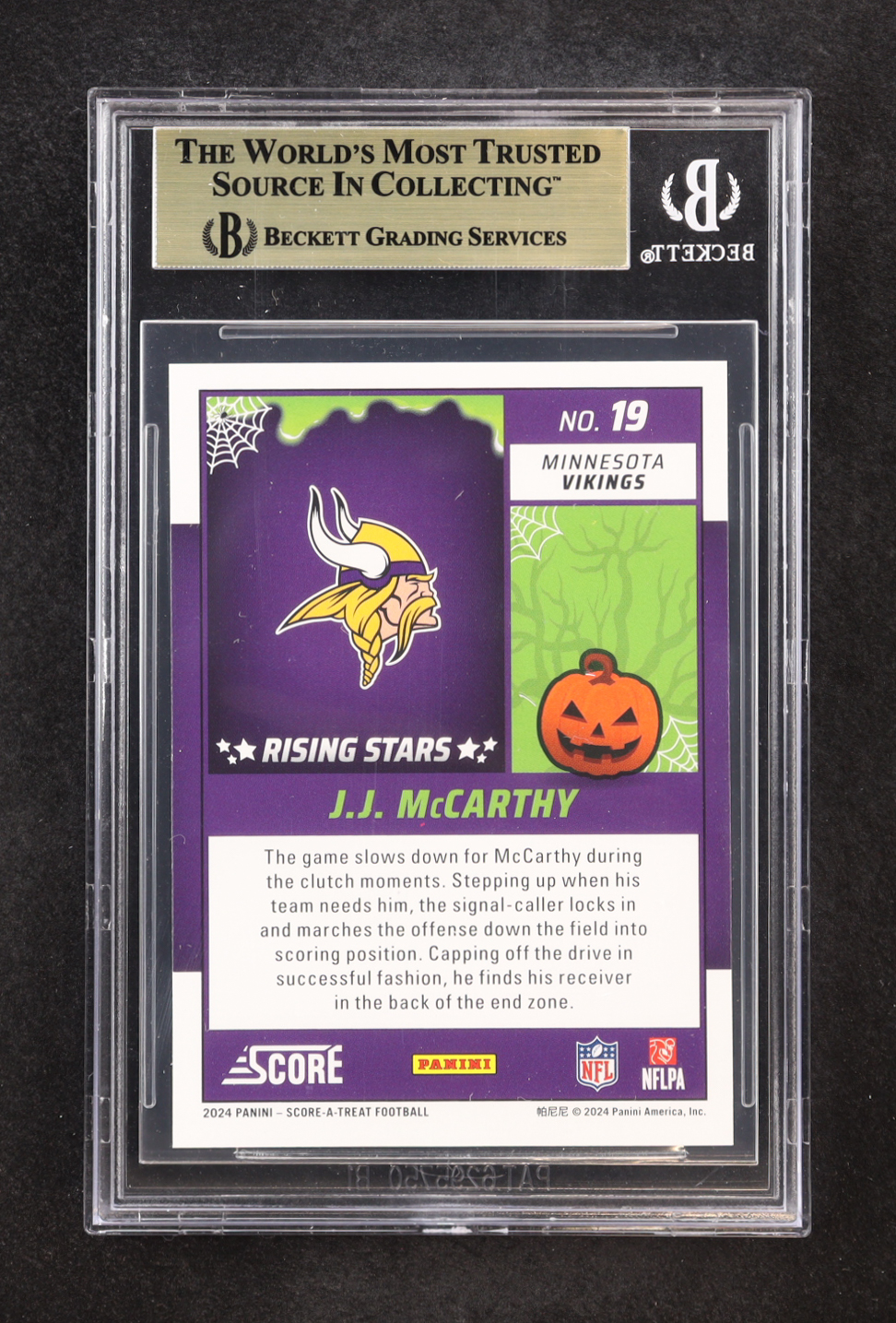 J.J. McCarthy 2024 Score Halloween Rising Stars Bats #19 RC (BGS 10)