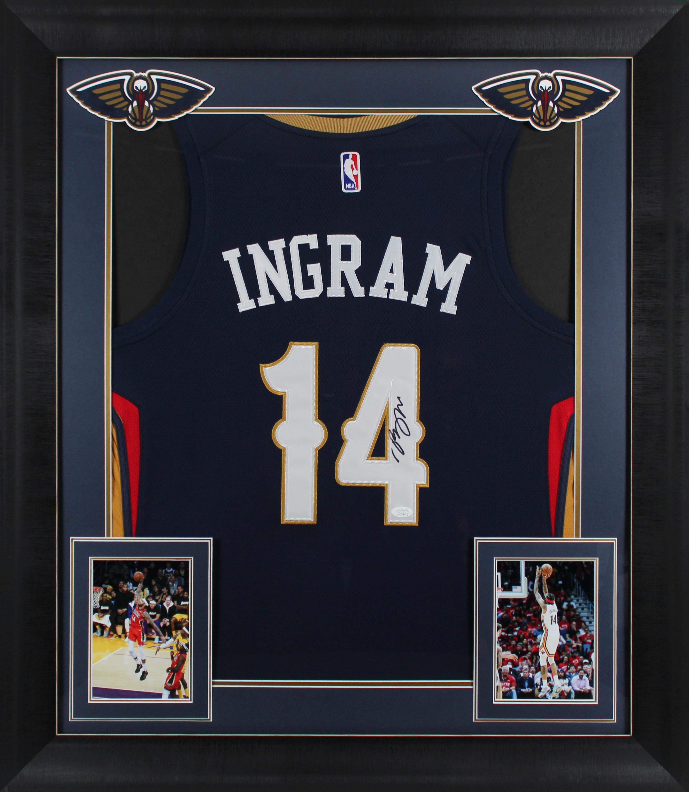 Custom frame measures approximately 32" x 37" in size and features a jersey that has been hand-signed by Brandon Ingram (New Orleans Pelicans).