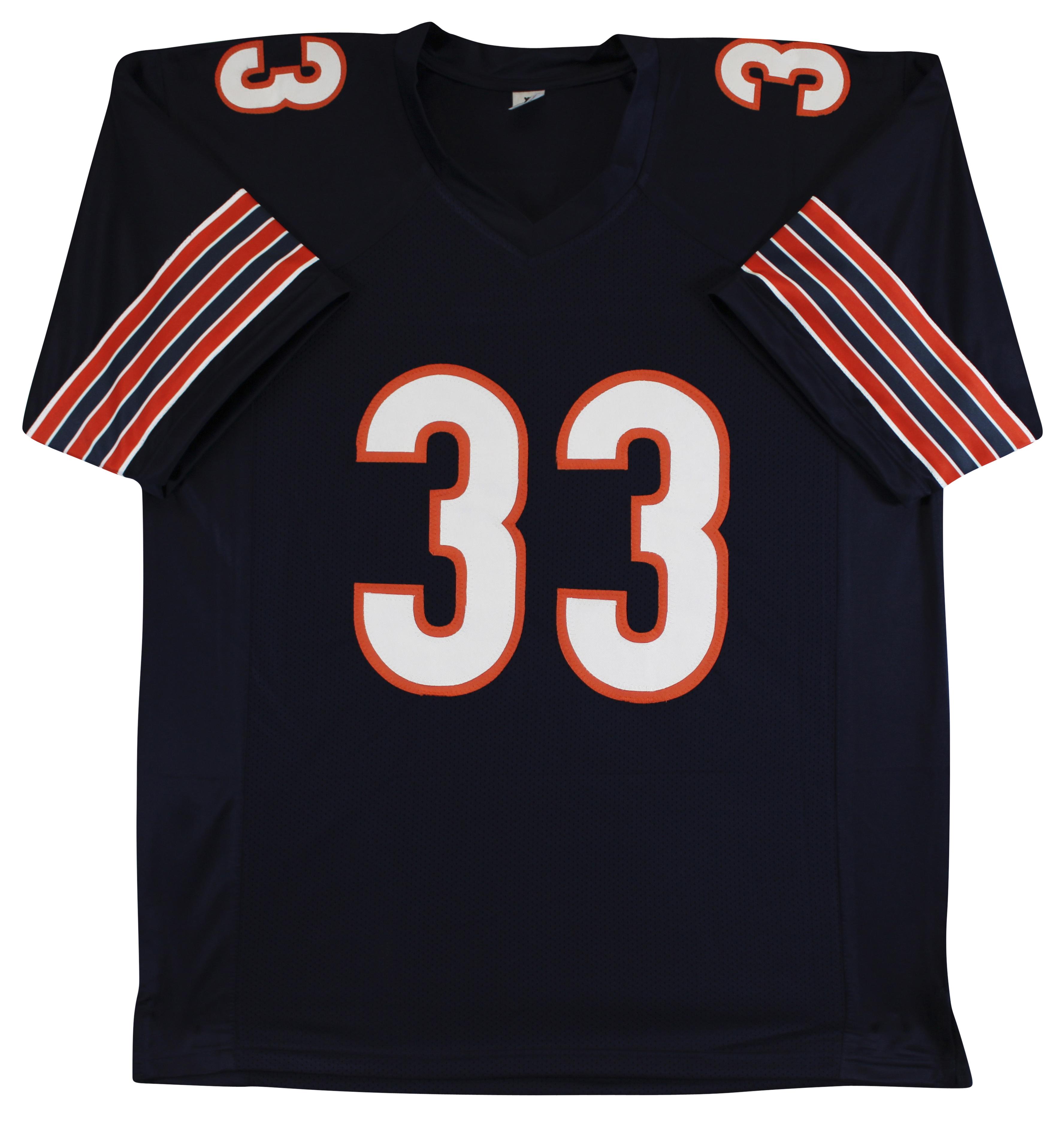 Custom jersey with everything sewn on, size XL. Has been hand-signed and inscribed by Charles Tillman.